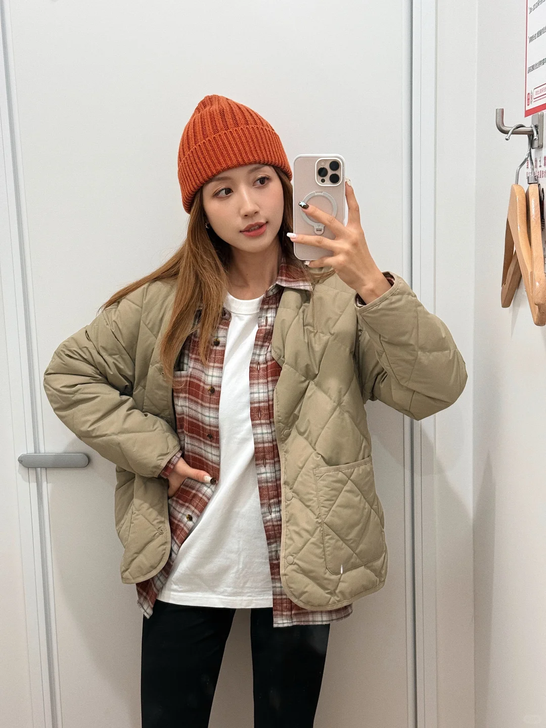 爆款PUFFTECH空气棉服,本来是奔着白色去的,结果被燕麦棕色吸引,里面配橘色系格子衬衫,太适合去拍红叶🍁了吧,是属于秋天的一套呀。虽然是棉服,但是穿起来暖如羽绒,而且外层料子做了防水易去污,很好打理。宽松茧型的版型任何身材也都可以驾驭~