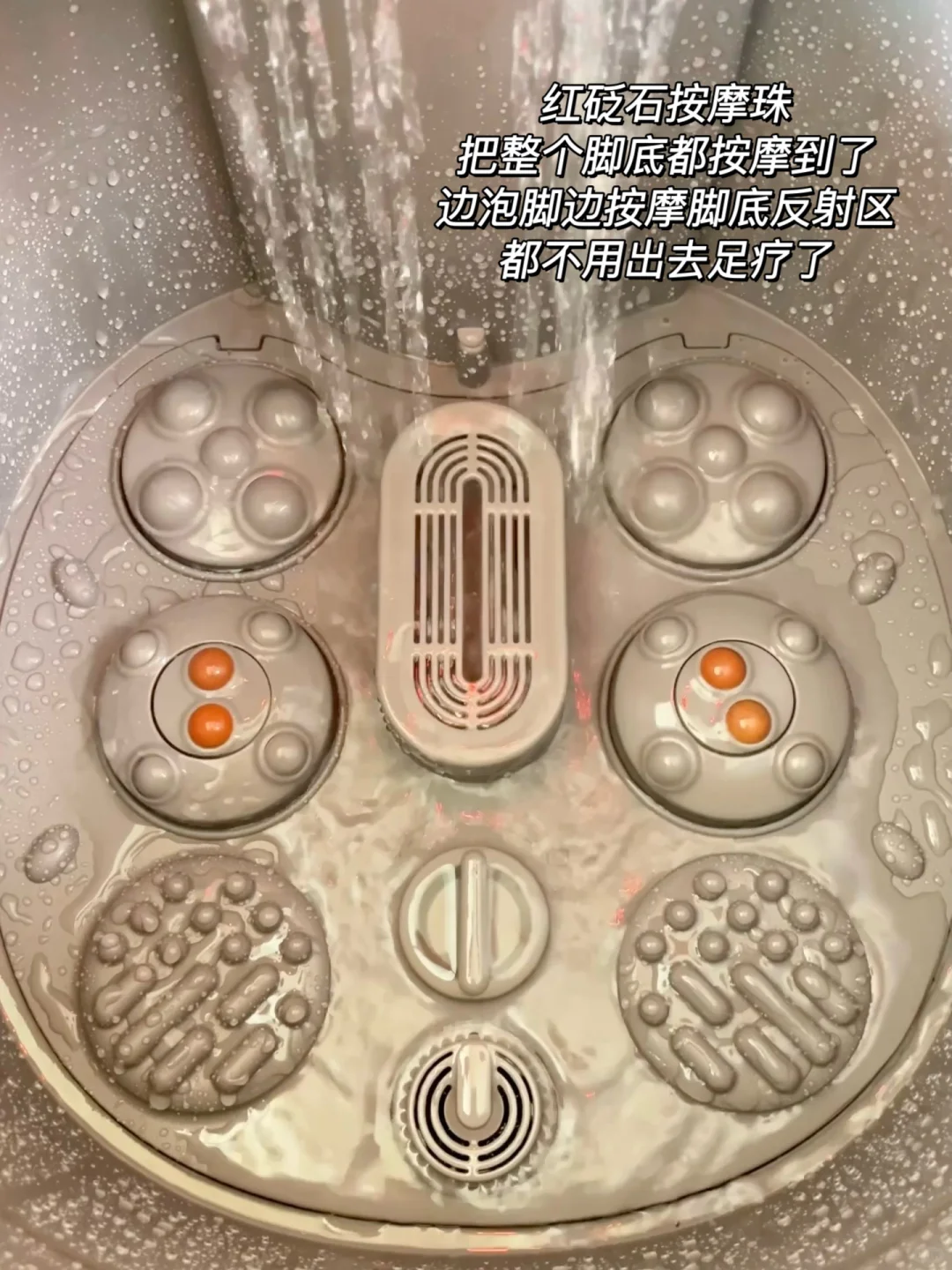 而且底部还有红砭石按摩滚珠,可边泡脚边给脚底刮痧按摩,都不用去外面💰花钱足疗了!不仅如此哦,小腿还可同时享受半环绕式恒温喷淋哦,就跟在做 spa一样!