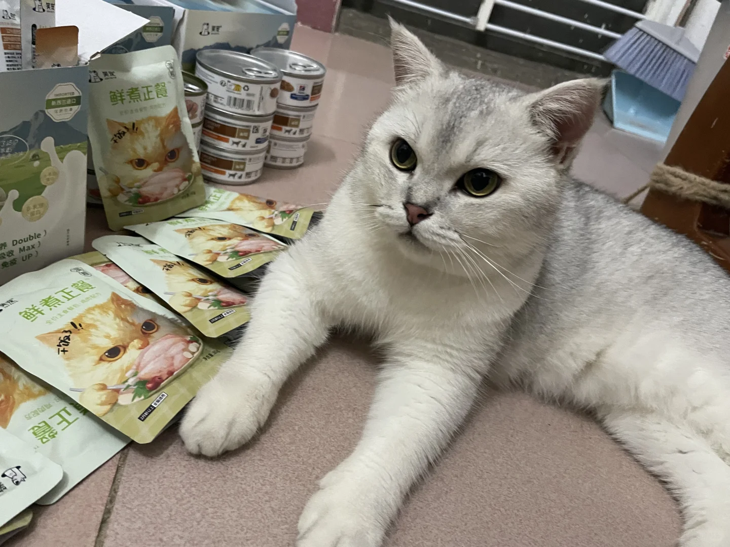 昨天又收了一堆快递,都是笑宠家湿粮包和羊奶包,罐头和猫条,我一边拆快递📦大头怪已经闻到香味,一直死死守在旁边,试图想叼走一根猫条或湿粮包。还好被我发现了[笑哭R],突然发现大头怪和湿粮包上的猫咪神情有点像。[笑哭R][笑哭R][笑哭R]。赶紧收起来,不然又不见几包。当晚就开了五包给它们试试好吃不,还可以,各有各喜欢。
