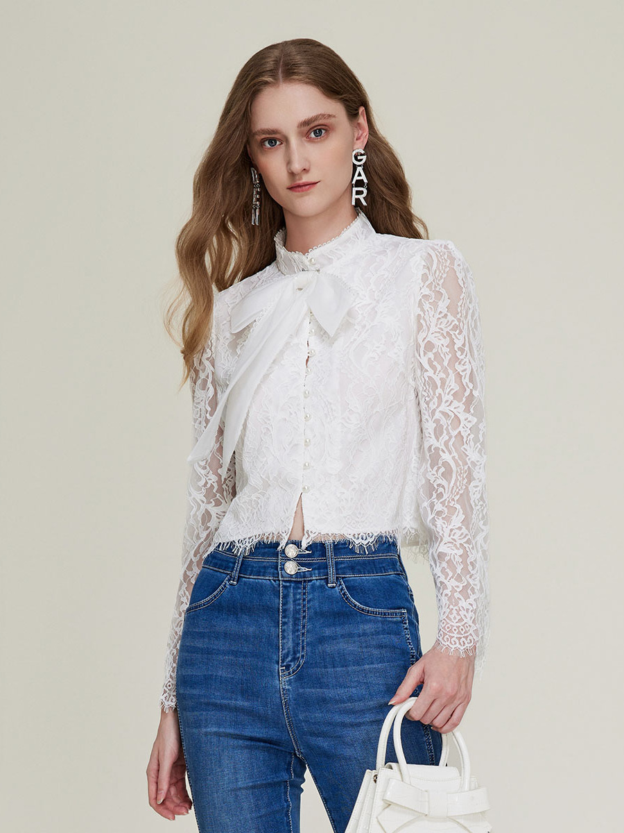 哥文花园秋季蕾丝蝴蝶结法式上衣女