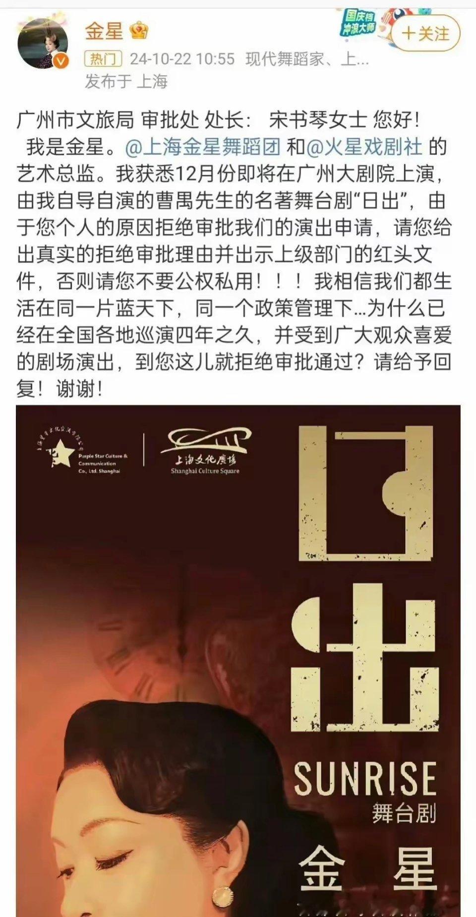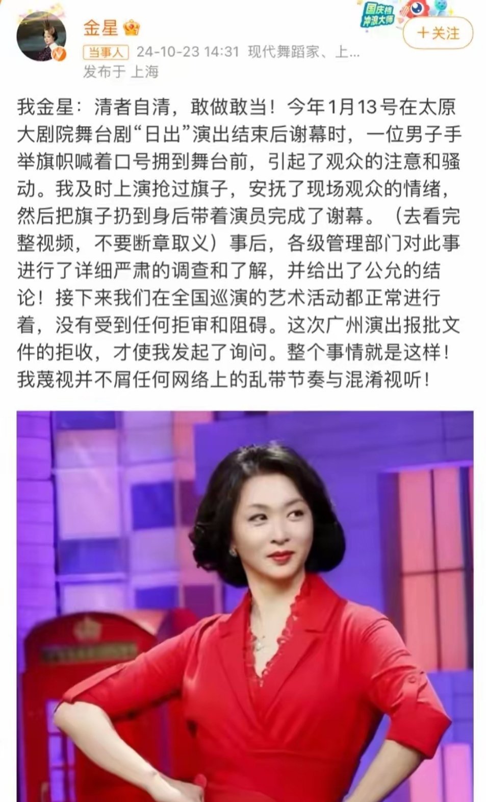 #金星回应广州演出被拒的原因#金星再次发长文回应演唱被拒:我金星:清者自清,敢做