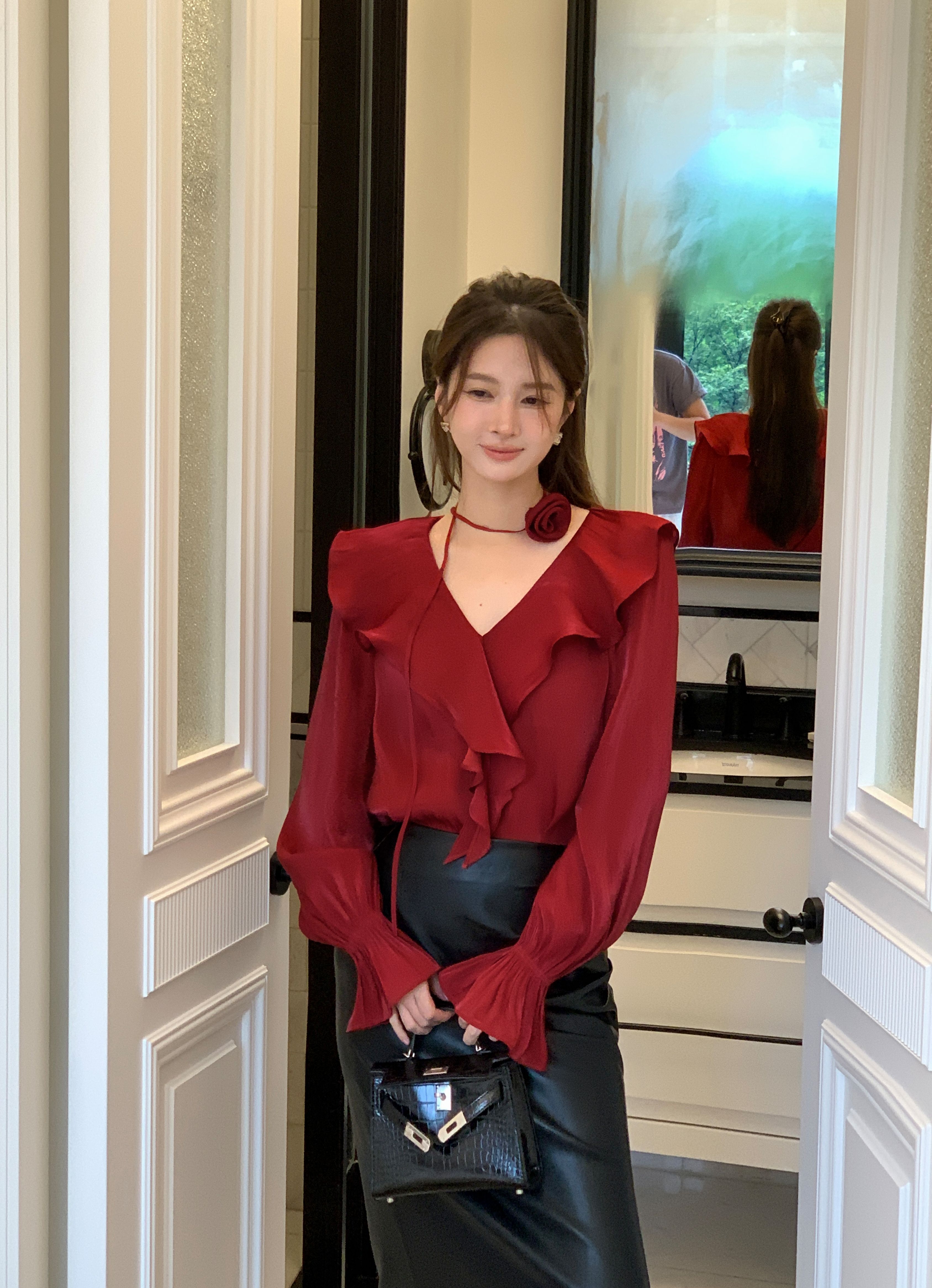 DPLAY法式浪漫,宽松长袖雪纺衫,飘逸舒适,尽显优雅气质。