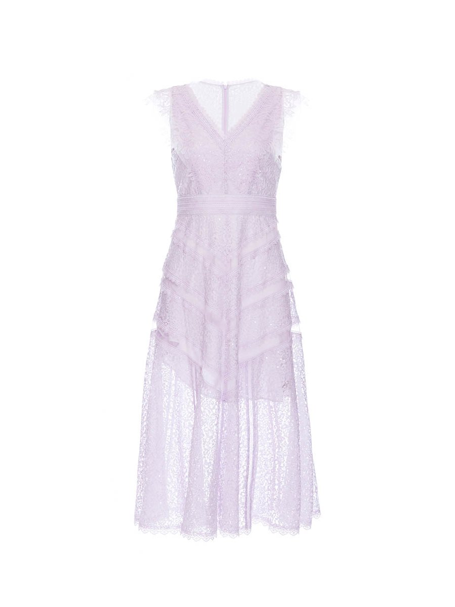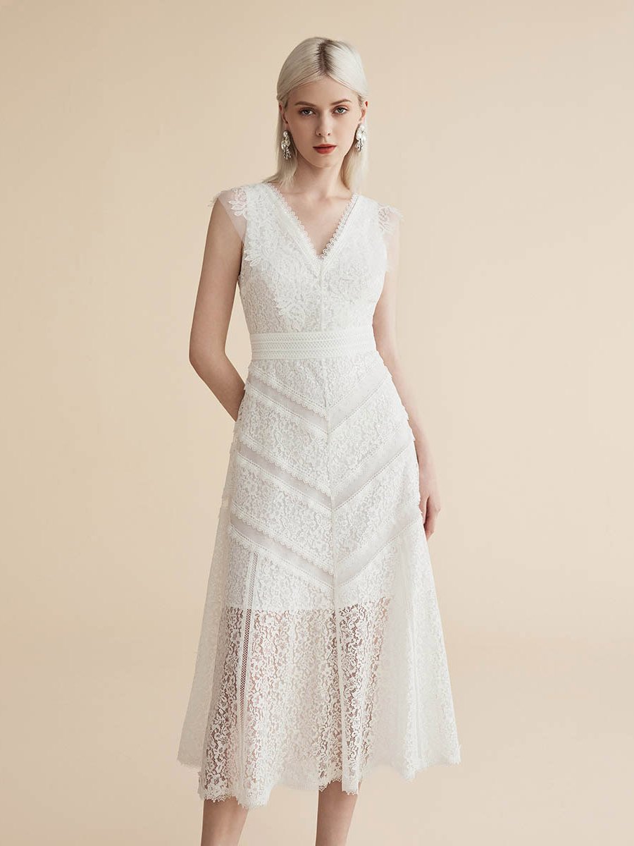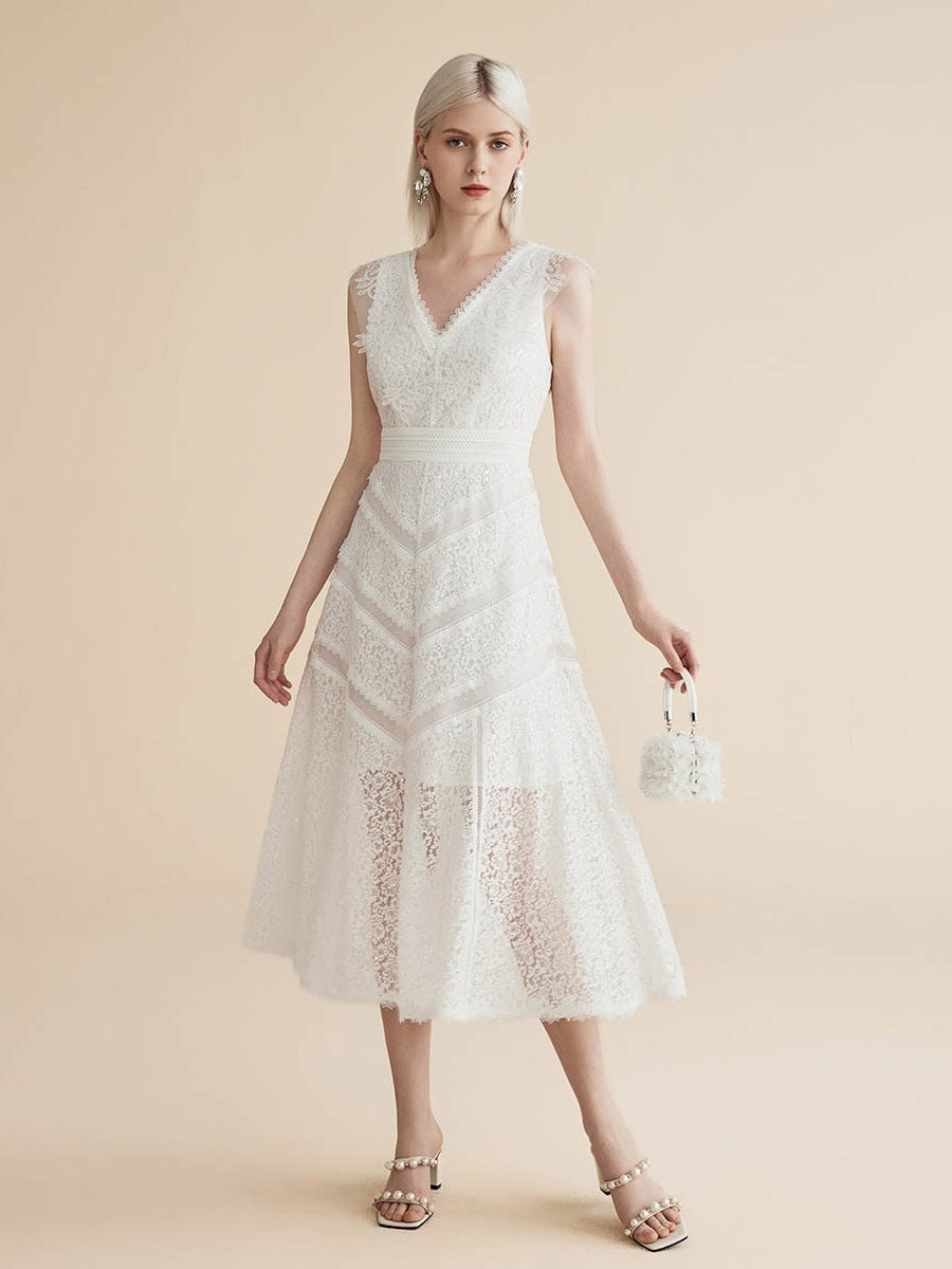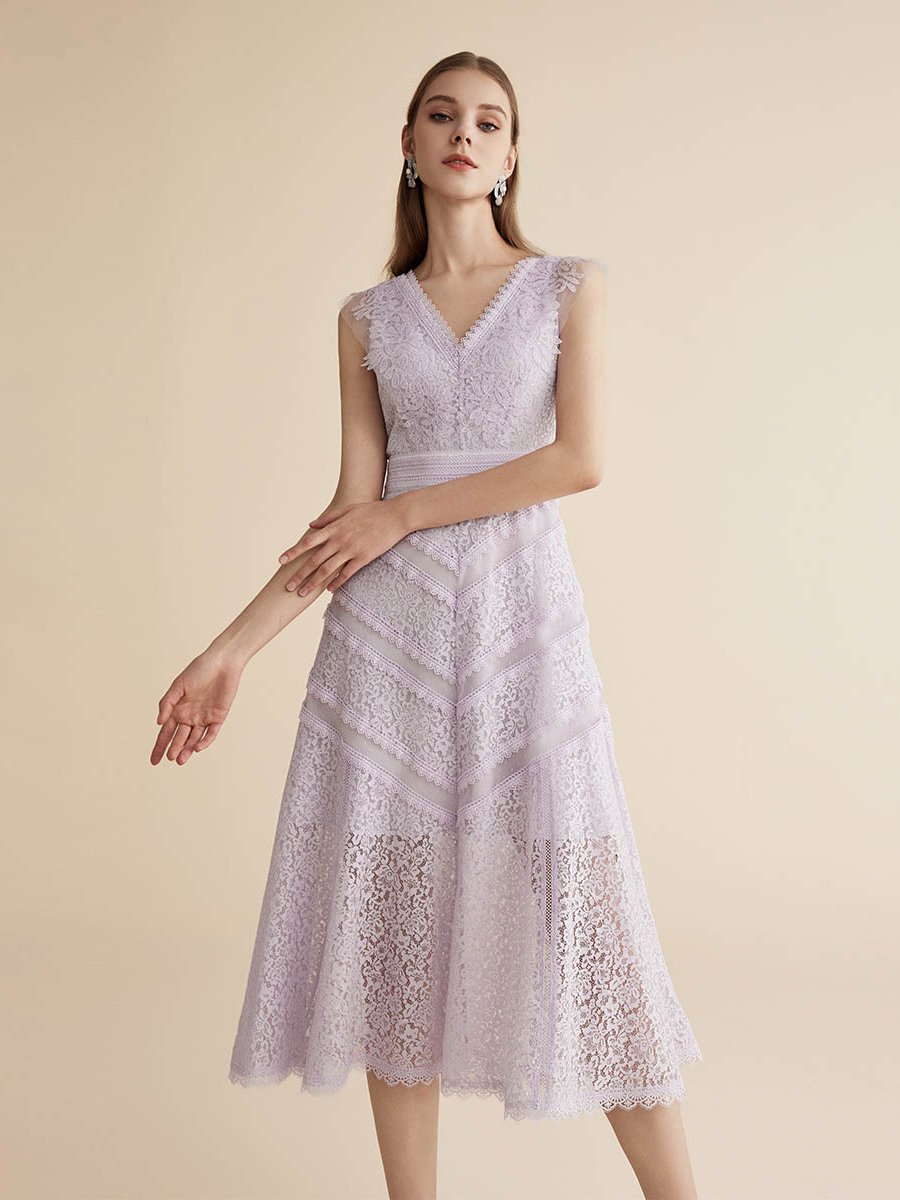 哥文花园夏季新款收腰睫毛蕾丝无袖连衣裙