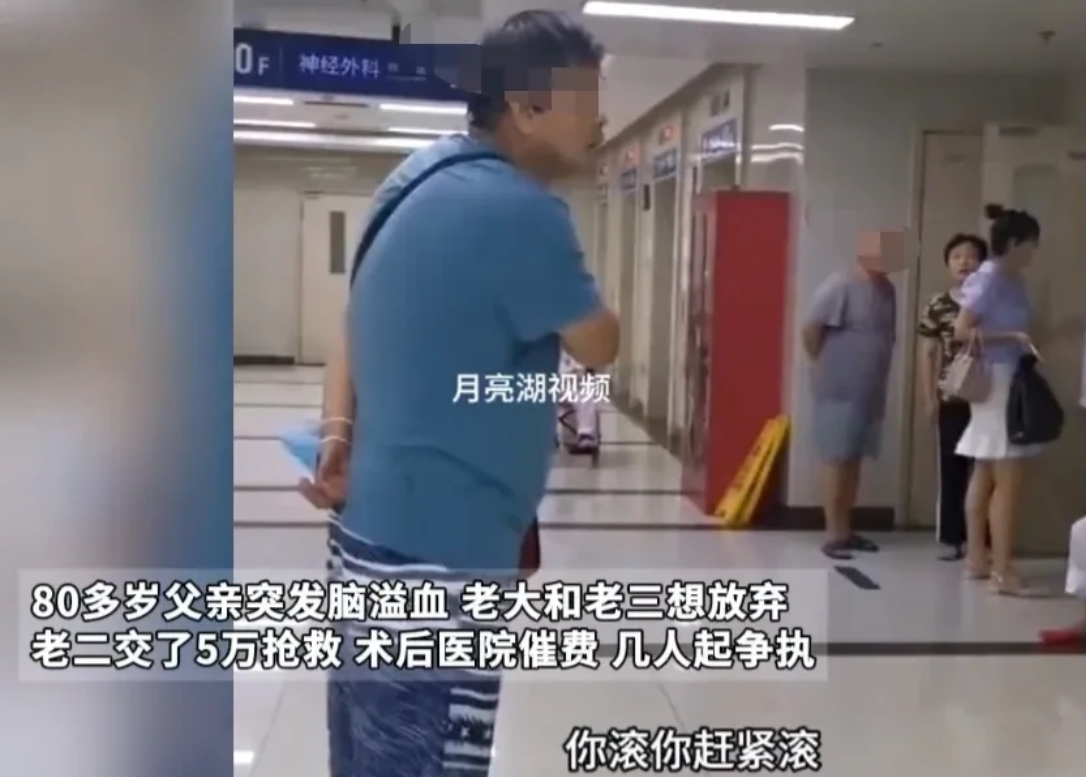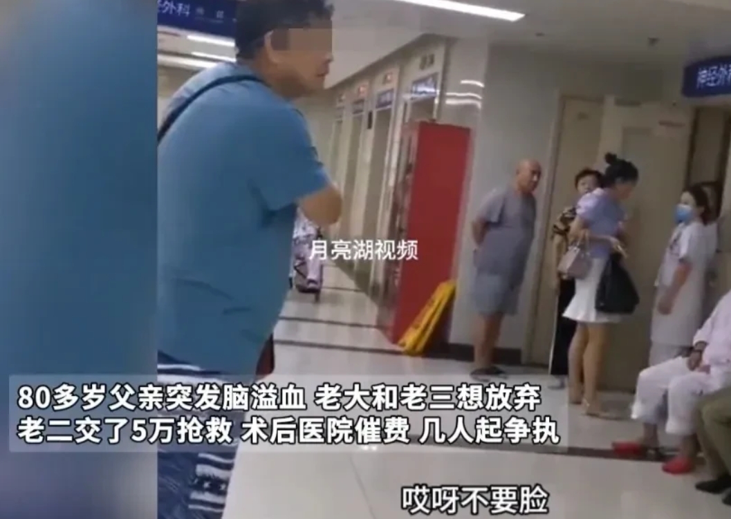 救不救都难!80多岁老父亲,得了脑溢血,老大和老三都要放弃,老二却交了5万元抢救,结果术后4天,医院催费,他没钱了,就下跪让老大给钱,老大却一口回绝:当时让你不要救,你非得要救,我可不想为了救他人财两空。