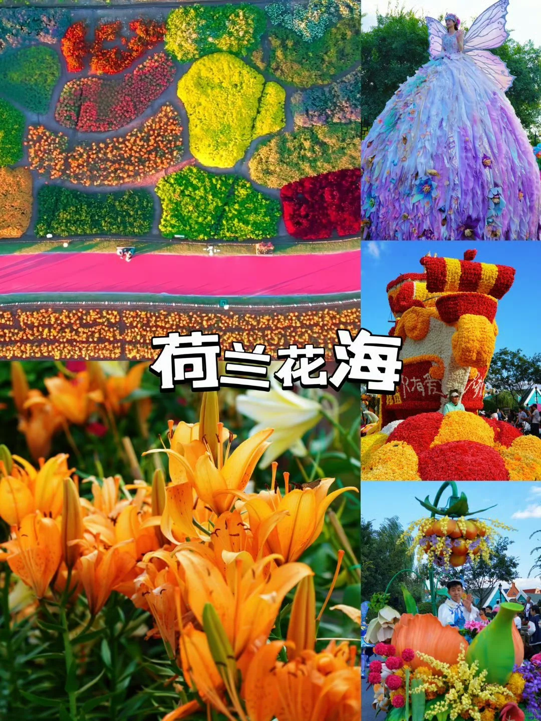 🌷 前往荷兰花海,这里有各色的百合花竞相开放、簪花、飞跃荷兰、动物营地、花车巡游