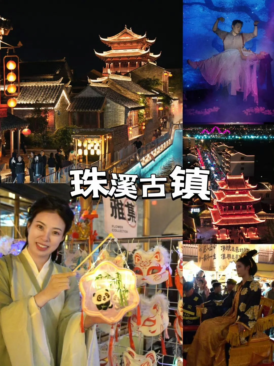 🌃 傍晚时分,前往珠溪古镇,漫步在青石板路上,感受古色古香的街巷和特色店铺。传统乐器演奏、镜花缘巡游、相约伍佑……各色表演,精彩纷呈。