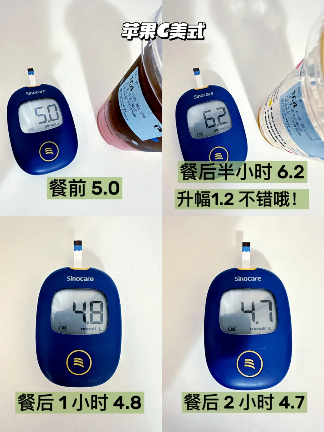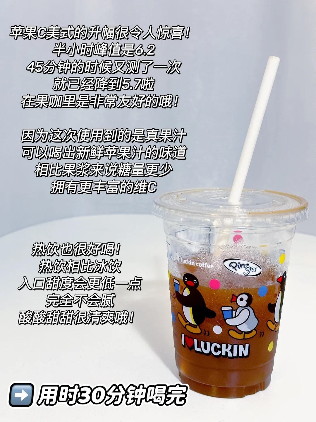 瑞幸苹果C美式升糖测试来啦,水果C家族又添新成员啦[鼓掌R][鼓掌R]这次用到的是真果汁,一杯=一整个苹果🍎0脂肪,低热量,糖量更低,低负担更健康✔
