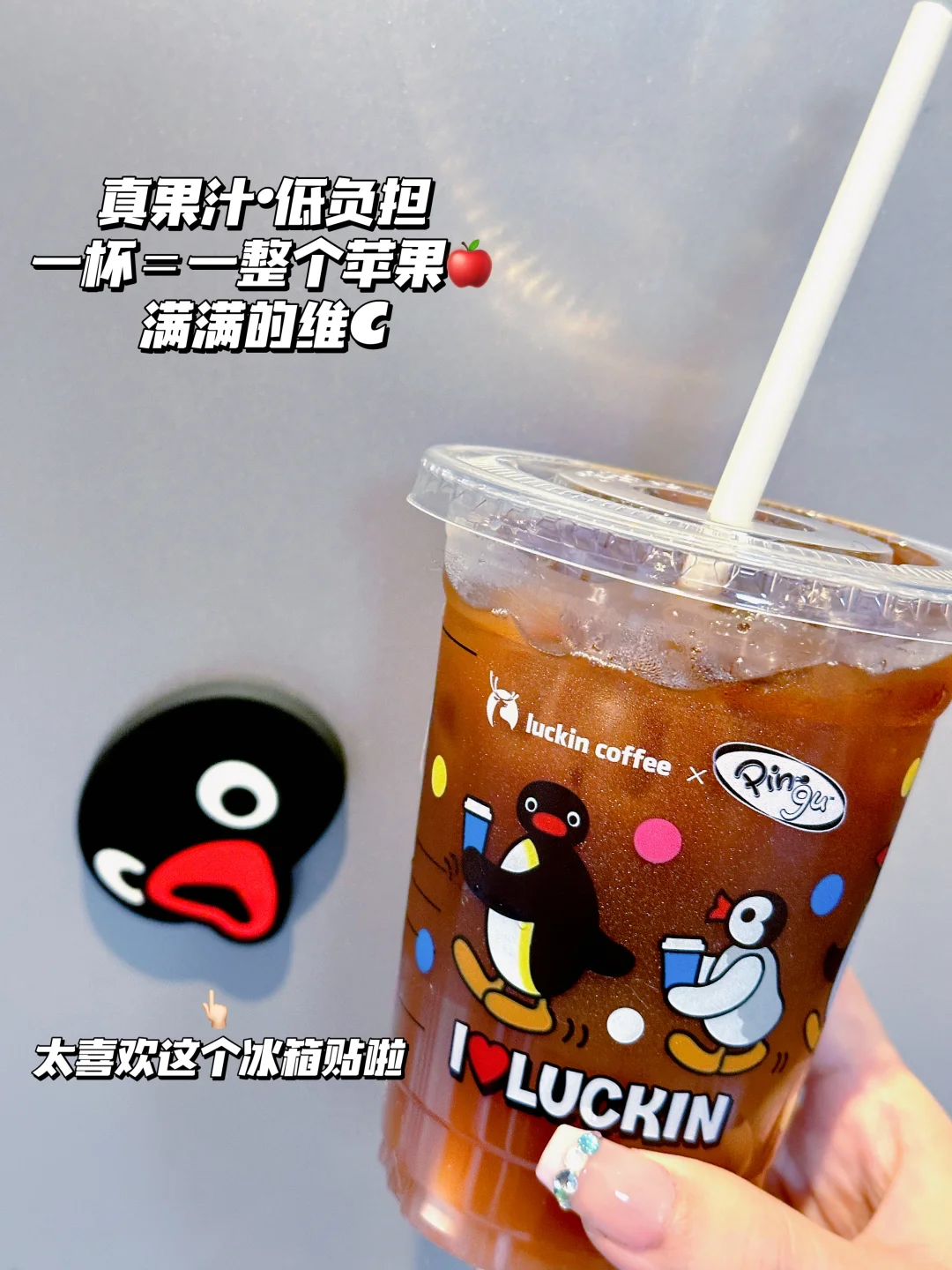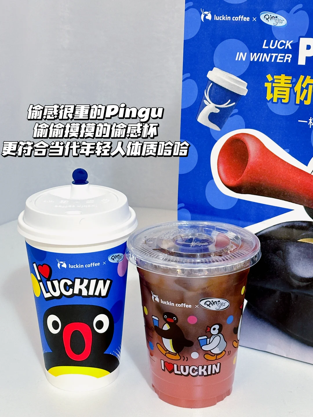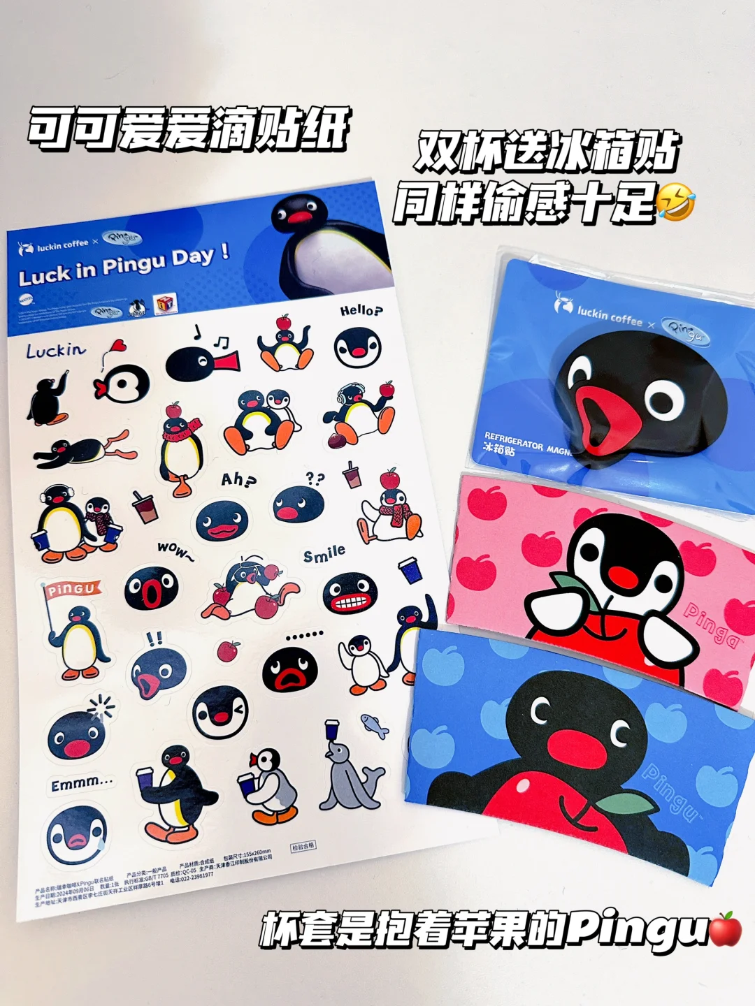联名了偷感很重的Pingu哈哈哈〰️周边都好可爱!两杯套餐就送Pingu冰箱贴和贴纸〰️