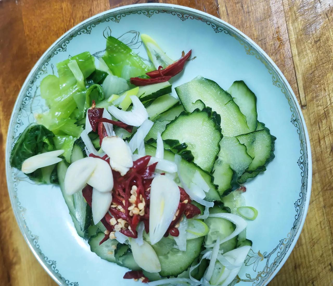 #秋日三餐打卡#今日,6点半起床,天灰蒙蒙的,似要下雨。早餐2菜一饭一馍:红薯玉
