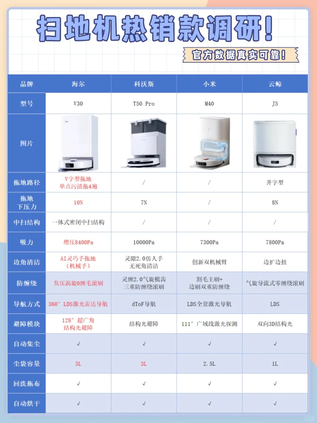 扫地机器人大牌热销款,关键数据来源于官方,真实可靠哦,这些数据商家都是经过专业机构检测认证基本不会假,值得参考,有问题可以问我哦。