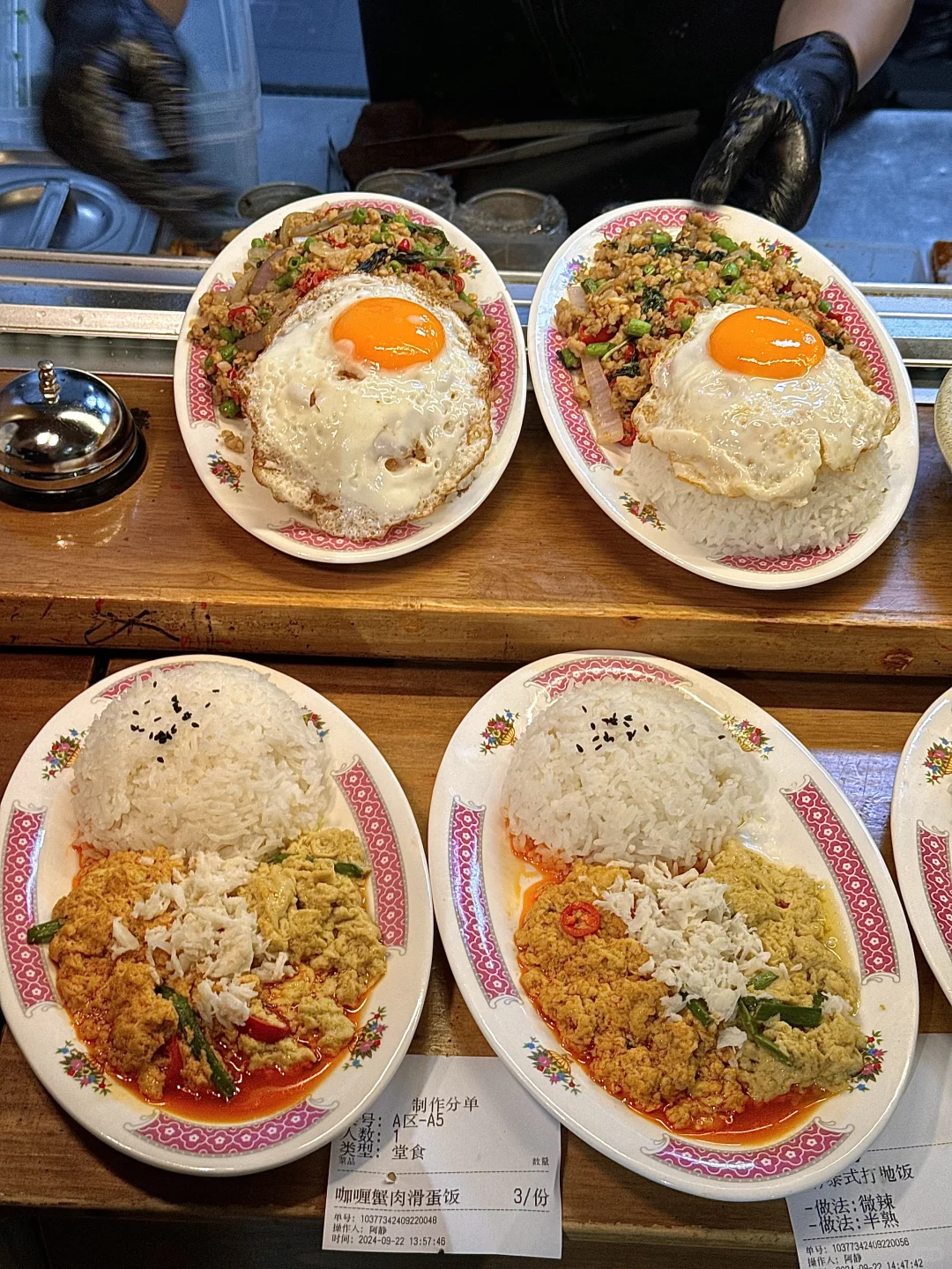 打抛饭和咖喱滑蛋蟹肉饭 也太好吃了吧