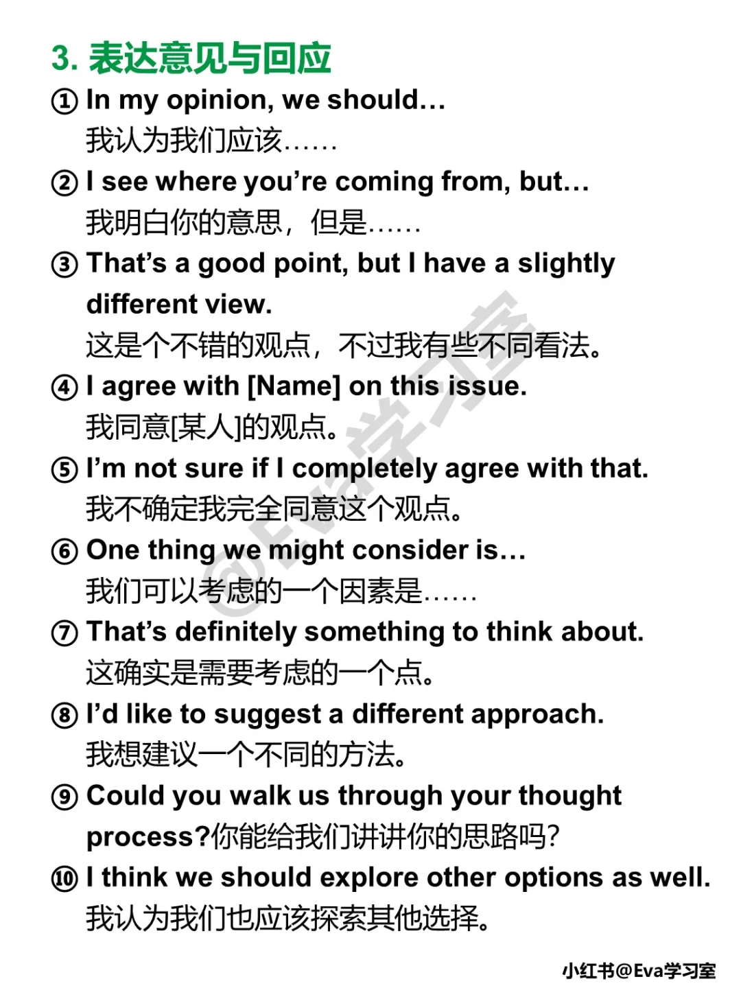 ✅I share the same view as [Name], and to build on that, I would suggest…”我赞同[某人]的看法,在此基础上,我建议……