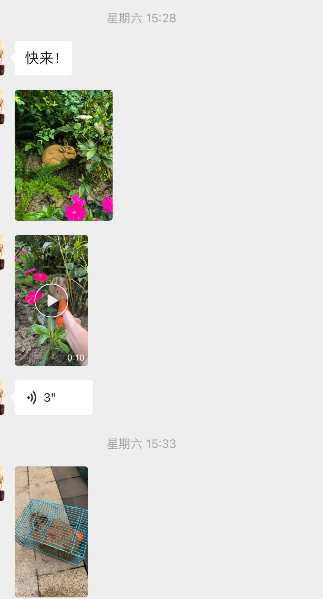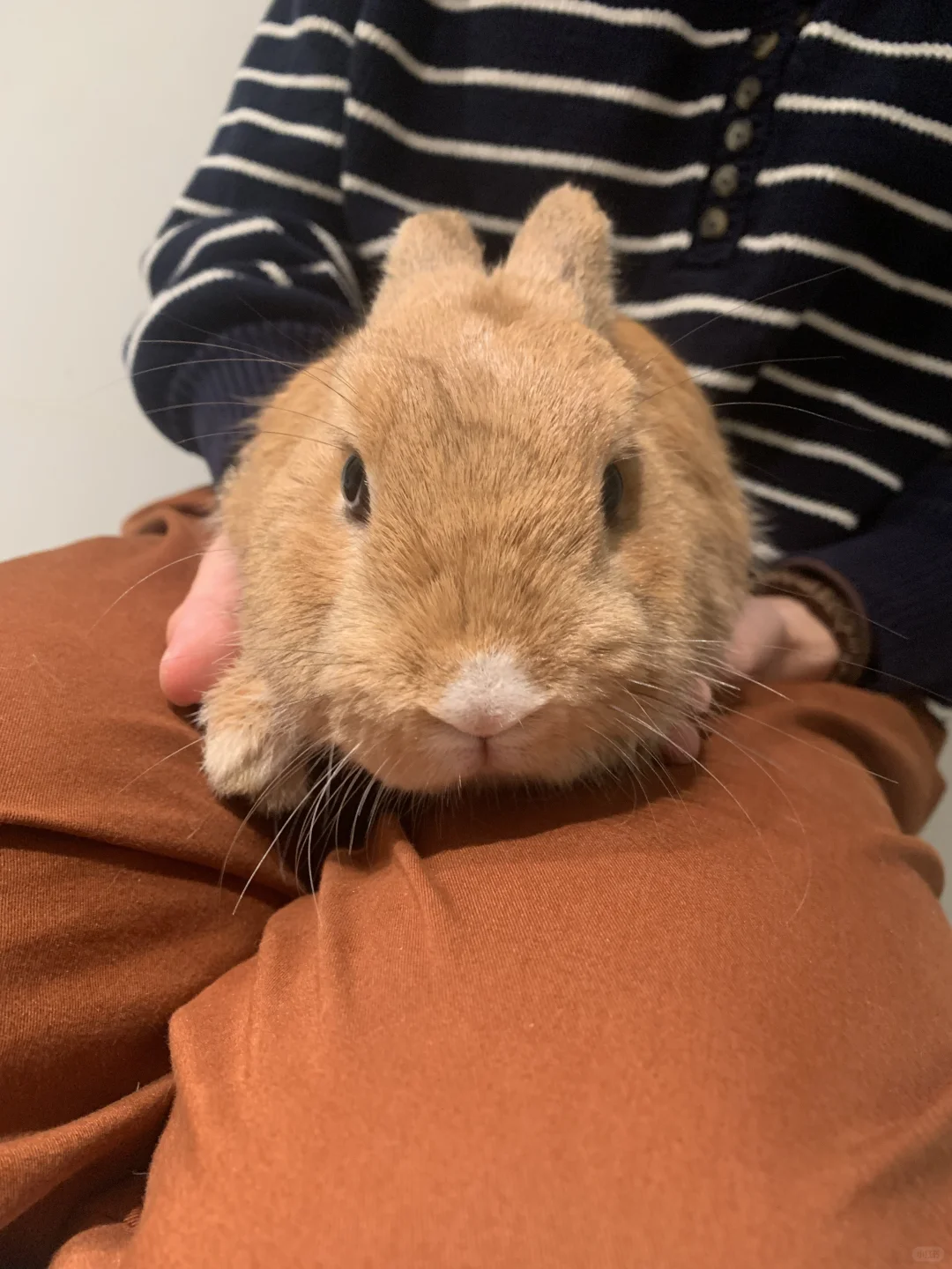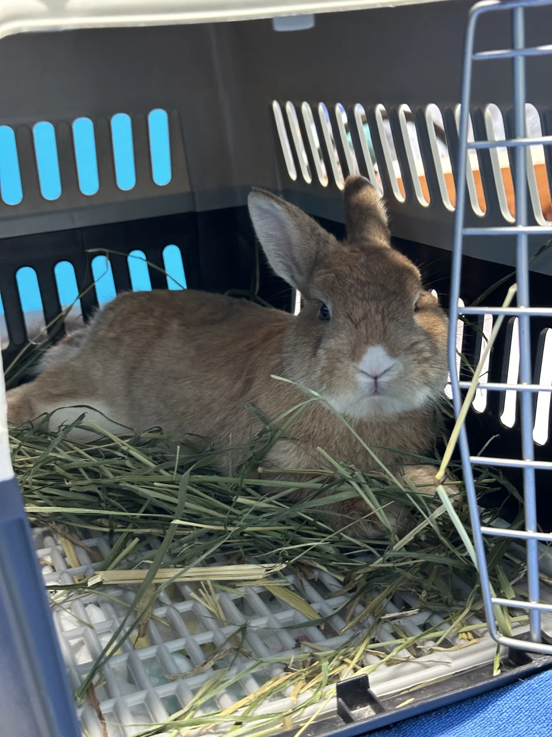 朋友小区里流浪了一个多月,有人发现在群里发朋友就去碰碰运气最终用了根胡萝卜骗到手,去抓的时候兔兔在吃绿化带里的花,是个1.195kg的男孩子,大概率是不想养了被丢出去的,除了毛毛不太有光泽和一只后脚趾有伤以外体检结果都很健康,医生都不可思议流浪了一个多月。 接回家后宝莱(原住民)反应特别大到处拉屎拉尿占地盘,黄兔(橙子)性格很沉稳对别的兔都没兴趣,不挑食会定点会舔人不抗拒被摸被抱,到家甩过一次尿和爱尿软垫,不确定有没有绝育过(忘了问医生)不知道医生能看出来不,本来不打算再养多一只兔子了,但想想与其筛选不靠谱的领养人还不如自己养了,可能就是缘分吧,本来以为已经找不到又突然出现了。