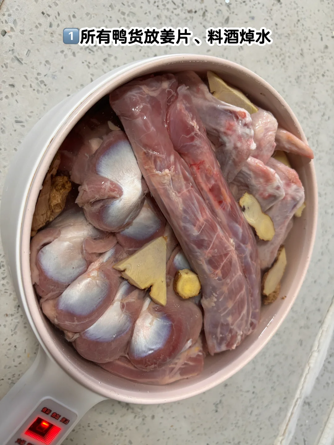 1️⃣只瞧她把鸭货放姜片、料酒焯了水