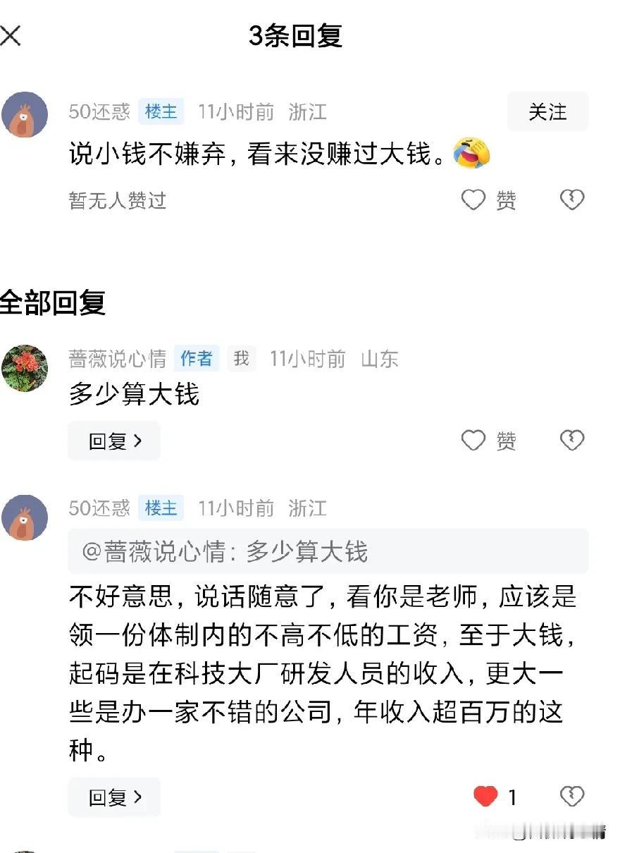 国内有多少人年入百万? 之前看别人调侃说头条人均收入百万,我笑了。大家都是普通人,赚个几千块工资,维持日常生活已经不错了,年入百万只是梦。 据调查国内大概有75万人能够年入百万。这个数字与14亿相比很小,相当于1万个人里只有一个人能年入百万。这些赚高薪的人集中在一二线城市里,小地方就很稀有。 前天我写自己收入了两个100多块小钱,相信没有人会羡慕嫉妒恨。但是我没想到有人会因此而鄙视,他的意思是,对于小钱如此在乎的人肯定没赚过大钱。 我不知道他本人收入怎样。但是我知道收入不错的妹妹,她也是很在乎小钱的,为了在网上买东西省钱,她还拉我助力。 做人踏踏实实努力赚钱,勤俭节约是过日子的本分。最好不要脱离现实,去做那些虚妄的发财梦。 我认识的一个小伙子范某,他是做酒店生意的。开始的时候,他在我们这边商业区的繁华地段租了一些房子开酒店。一套公寓房月租1500块,他简单装修之后每天可以收入130块。 口罩之前他的生意还是很不错的,年纪轻轻就有了自己的事业,收入蛮好,自己赚钱买房结婚。 看到做这一行还挺赚钱,他又租了了一栋三层小楼做民宿。民宿做的很有特色,但是投入肯定也不少。 很快到了2020年的疫情,范某的酒店事业遭遇了沉重的打击。封控期间整整一个月都没有人入住他的民宿和酒店。 三年的时间里,他的顾客人数骤降,收入很少,酒店业已经入不敷出,房费根本不能支付房租支出,他被迫卖了自己的房子才能够维持下去。 我们这边,一些装修不错的酒店甚至关门大吉。 范某的母亲本来已经退休了,为了给儿子帮忙,她在酒店里负责打扫卫生等日常工作,瘦小的一个人,很辛苦。 像我们这样的工薪阶层,能赚个稳定工资已经很知足了。工资之外再凭借自己的努力赚一点小钱感到很开心,可以给家人加鸡腿,何乐而不为呢? 努力的人得不到回报和尊重,是悲哀。 #秋日生活打卡季#