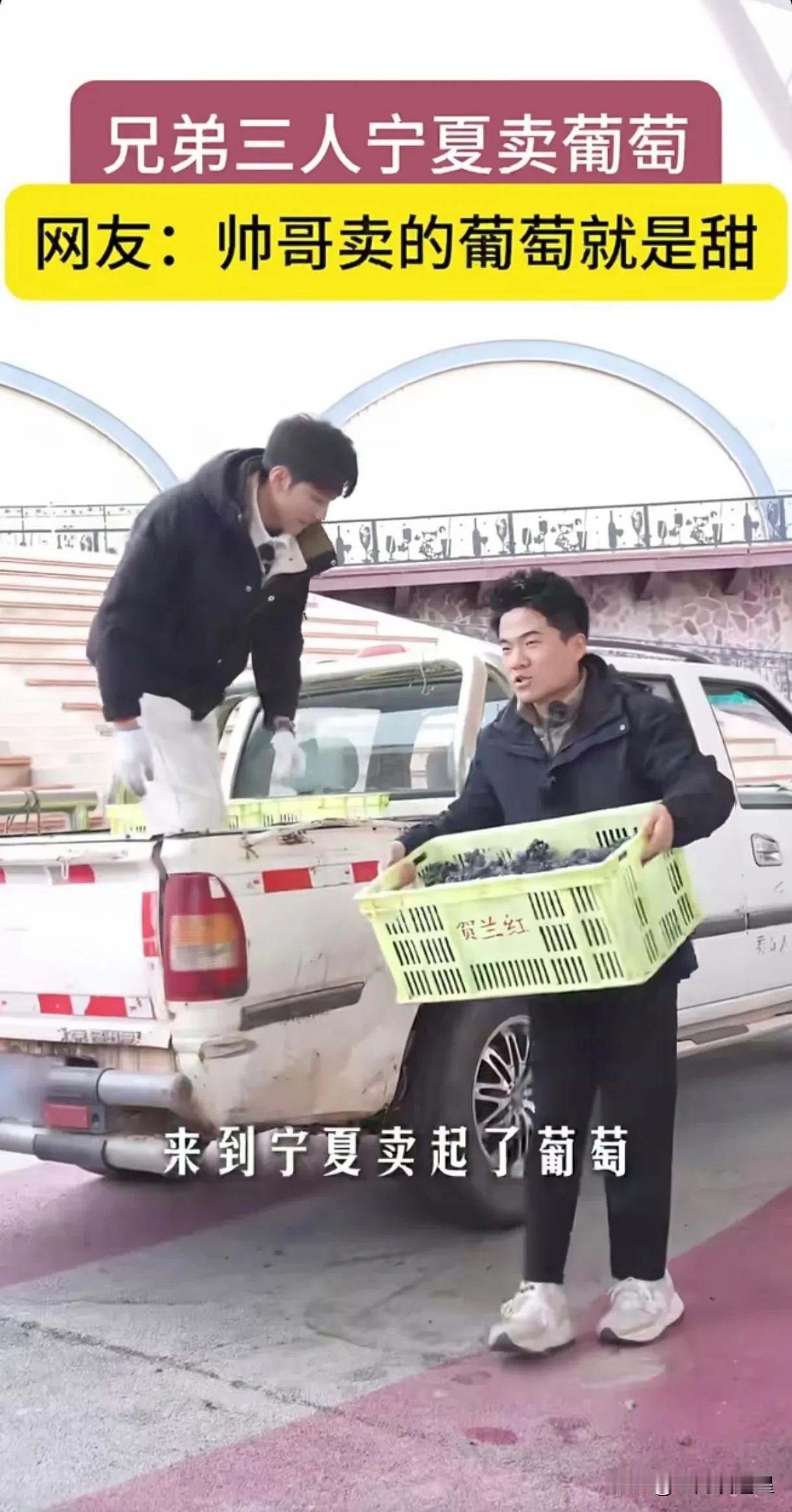董老师宁夏行的正片未播已先火 一个帅哥带着俩兄弟创业 看这位拉货师傅太帅了 拉货的小货车也很拉风 站在后车厢里的俩帅哥显眼包[偷笑] 兄弟三人脸上洋溢着幸福的笑容 一定是创业非常成功的喜悦[比心] 别看董老师小小的身躯 他能搬动那么大筐葡萄 手上的力气还真大,有劲[赞] 昨晚看他在直播间讲大家电 在空调上、纸上写重点 今天看他下地摘葡萄搬葡萄 这孩子文武双全,优秀[赞]#董宇辉# #与辉同行#
