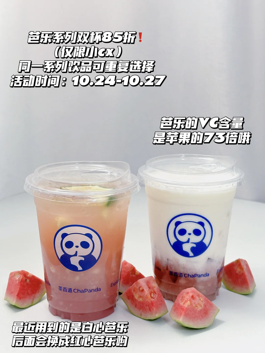 宝子们,茶百道芭乐系列上新!芭乐是低糖低卡高VC的水果,VC含量是苹果的73倍!今天安排茉莉芭乐和活菌·芭乐酸奶昔的测评👏🏻👏🏻