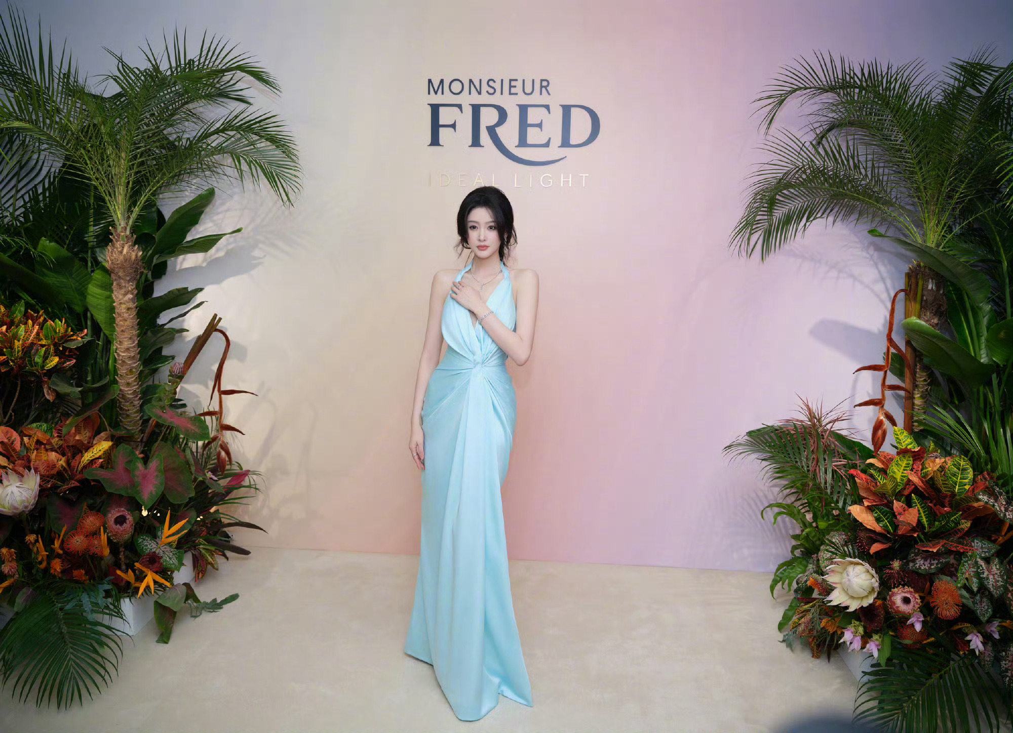fred斐登品牌大使张天爱~玩的很开心呢[彩虹屁]深V领礼服好成熟好美啊[哇]