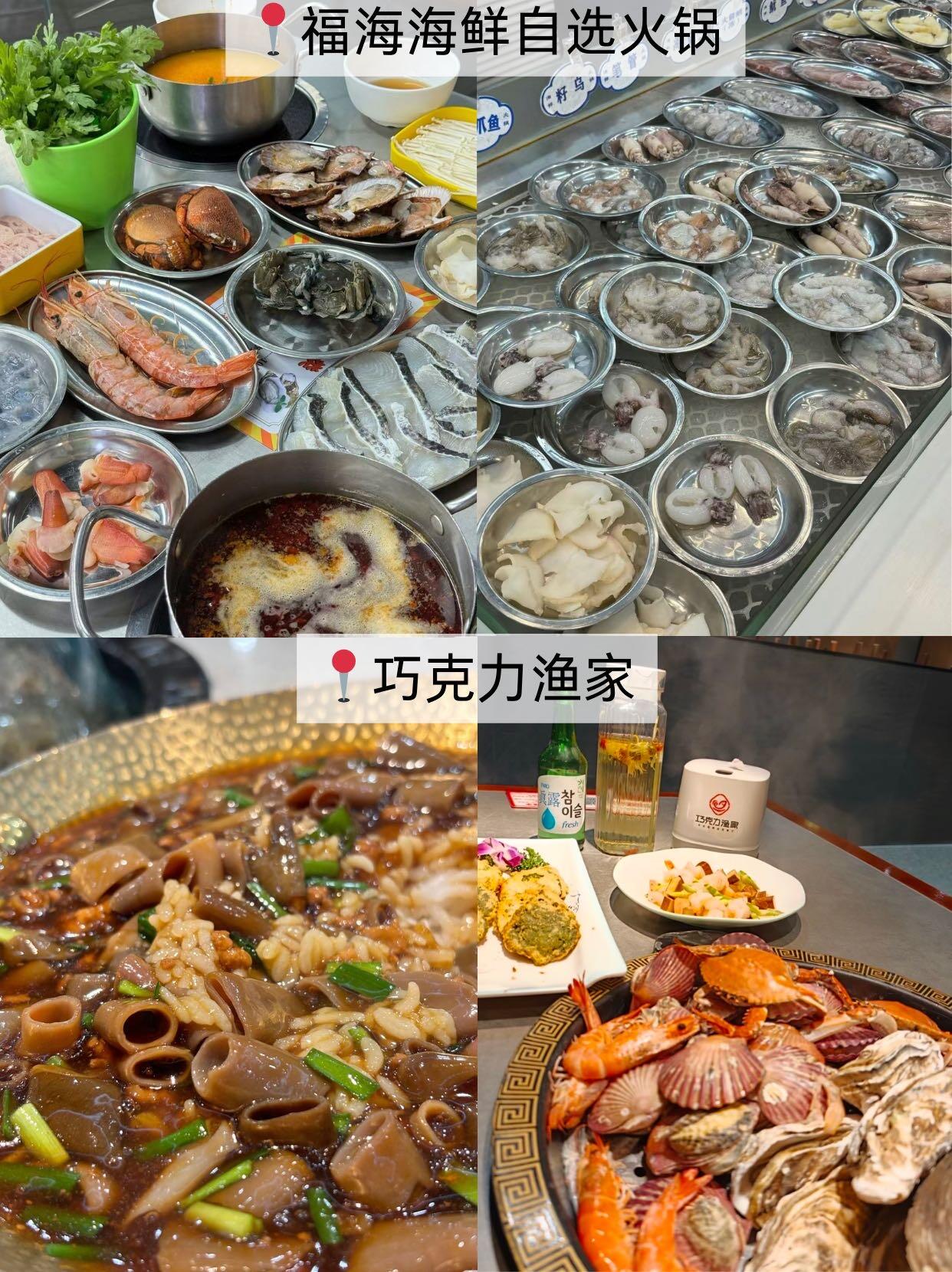 ✅晚上最后的重头戏当然是要吃整一顿海鲜啦!找来找去,最后选择了网上很火的巧克力渔家!他们家主打现捞现蒸的蒸汽海鲜锅,海鲜的鲜味儿被牢牢锁住,掀开锅盖香气扑鼻,虾蟹肉质紧实,贝类鲜嫩多汁,配秘制蘸料吃格外鲜~店里海鲜新鲜,处理得很干净,爱吃海鲜的人可以来试试!
