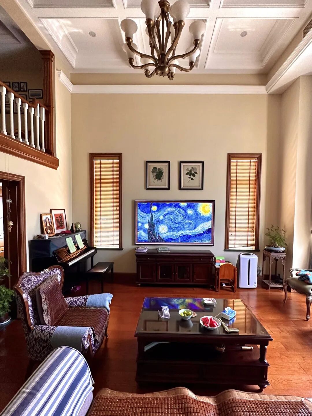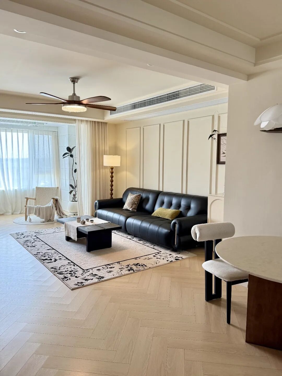 网友@小小美好 说,给客厅安排的吊扇灯,住了一年多,还是觉得这种吊扇最舒适,春秋季节,天气不冷不热时,开空调太凉,不开又有点闷,打开吊扇,微风徐徐。