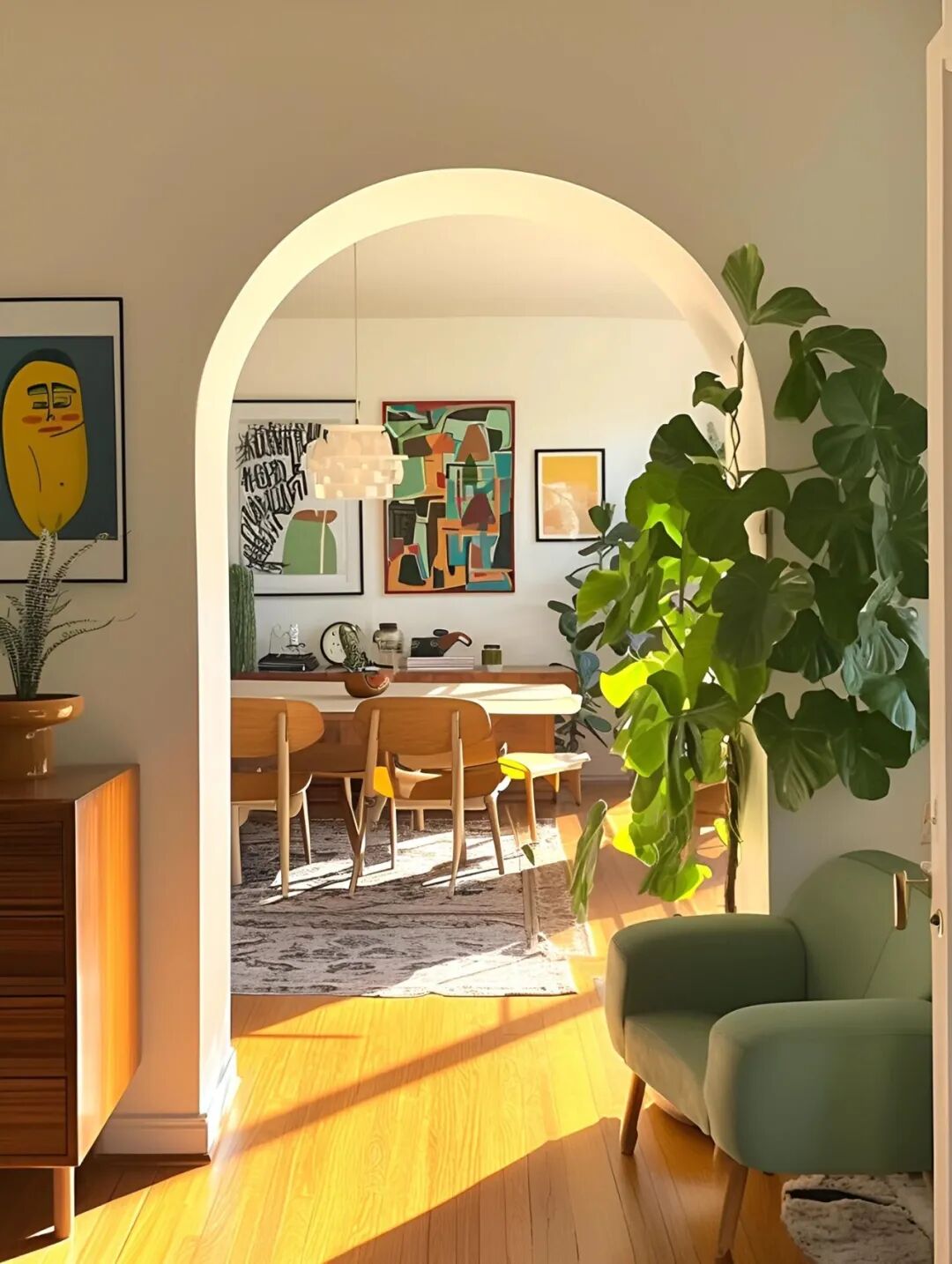 其实想想,老式弧形门洞的核心,就是规避棱角的生硬,让空间更柔和。