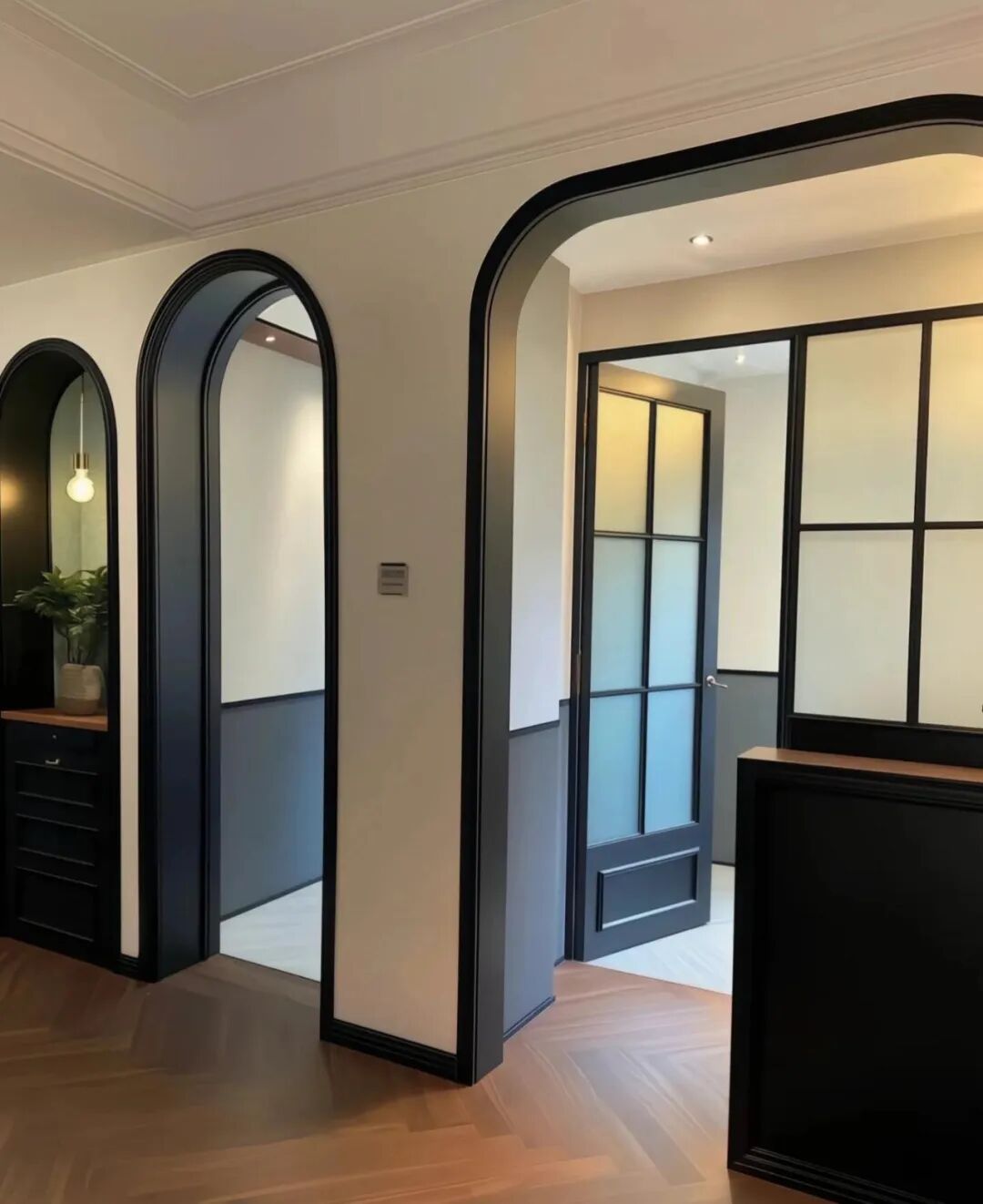 可现在,年轻人装修,反而疯狂追捧弧形门洞,只不过,比老式的更轻盈、更简约。