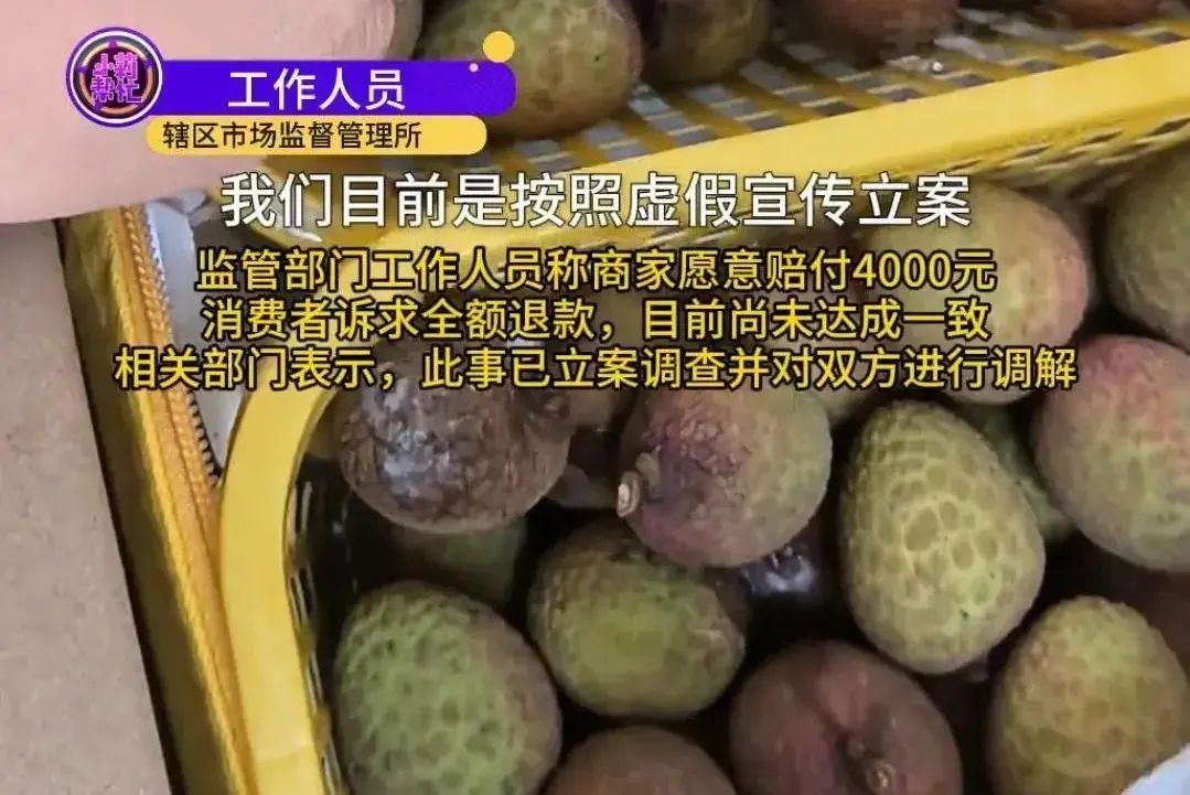 一万块血汗钱买来26箱劣质荔枝,结果还退货无门,家长的心简直要滴血。无奈之下,男孩家人只好向辖区市场监督管理局反映这件事,市场监管局的工作人员和商家沟通后,商家表示愿意赔付4000元。