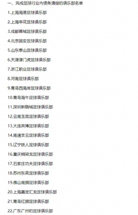 北京时间12月2日,中国足协在官网公示了首批不欠薪俱乐部名单,包括申花和海港在内的上海双雄领衔,北京国安、山东泰山等队在列,中超有3支球队、中甲有6支球队均不在列,包括了武汉三镇和广州队,但最终过关的概率极大。