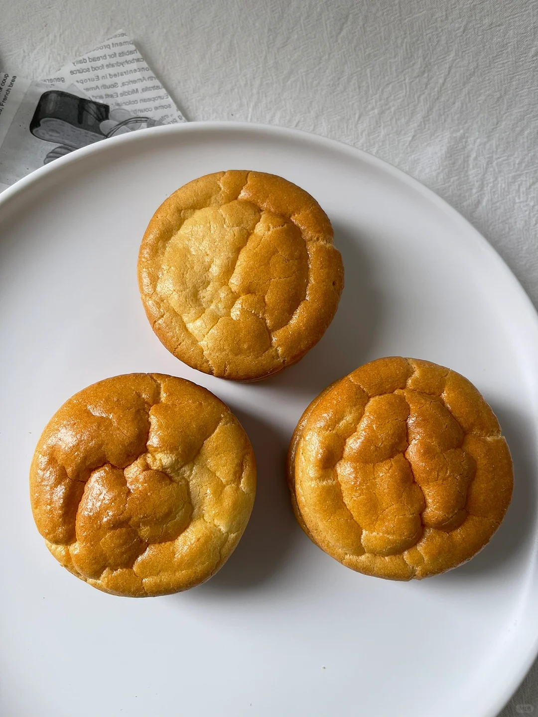 2⃣️两个蛋清加零卡糖,打发至蓬松硬挺状态,一半挖出加入蛋黄糊中翻拌均匀,翻拌后的糊糊再倒回蛋清糊中,翻拌均匀,装入裱花袋,挤出圆饼形在油纸上
