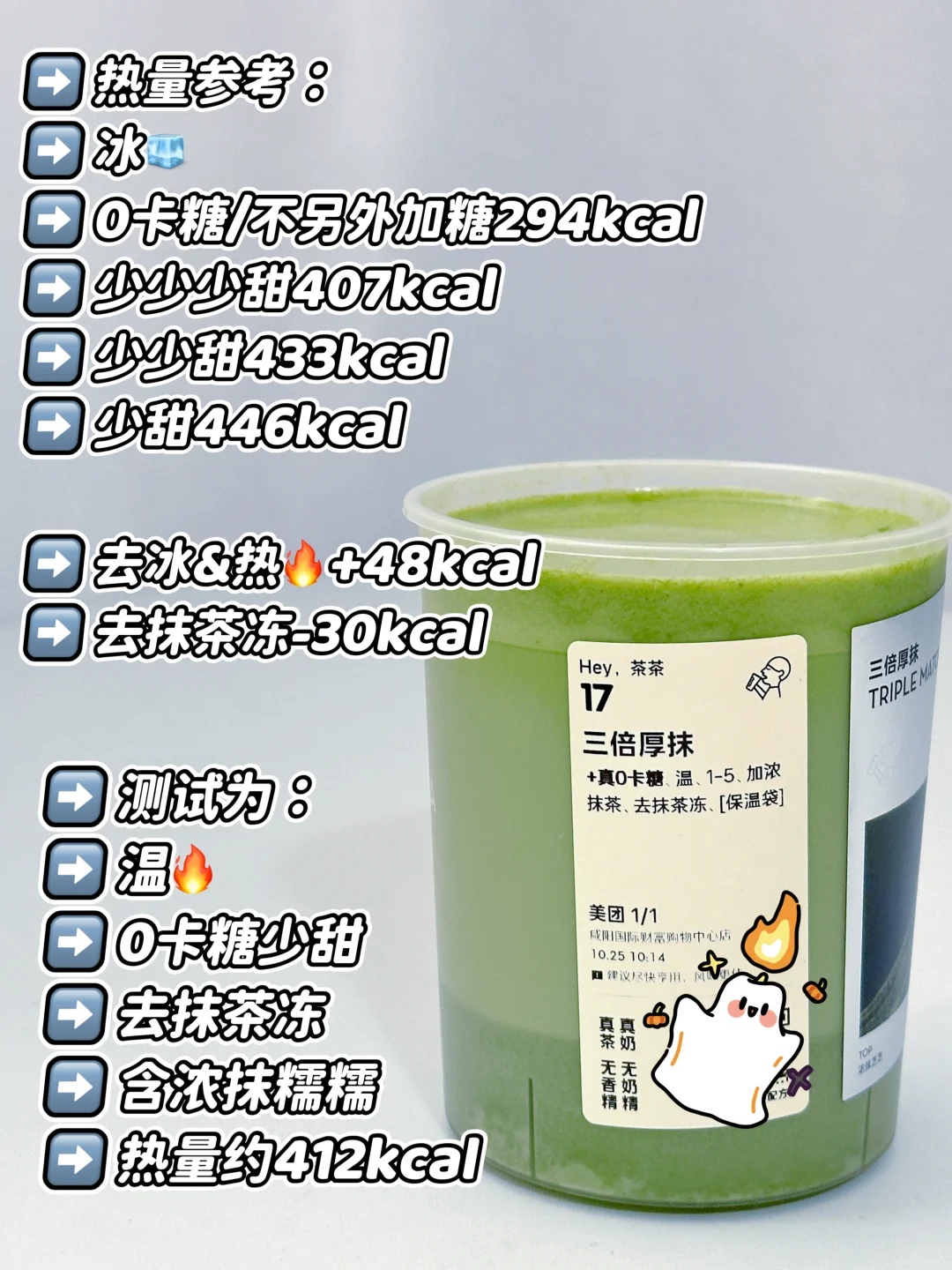 去冰&热🔥+48kcal / 去抹茶冻-30kcal