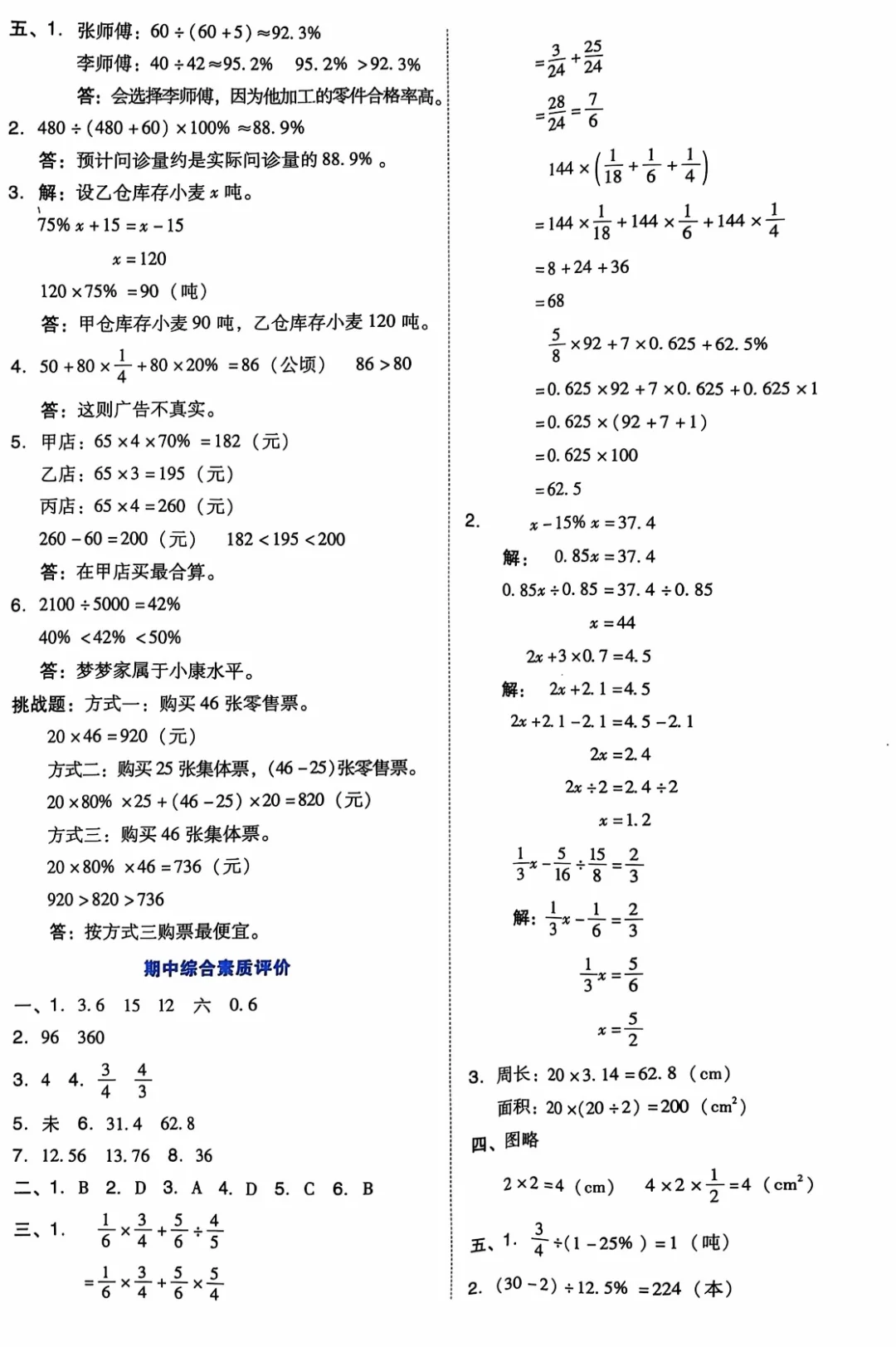 六年级数学|全网最全的期中测试卷练习✅