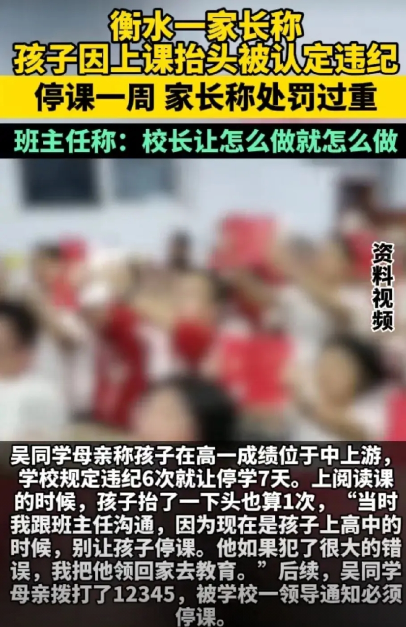 试想一下,倘若学生上课打个哈欠、放个屁、弯个腰、打喷嚏乃至回个头都有可能被定为违纪!那么那些早恋了吵架了吸烟喝酒了等违纪学生会受到怎样的处罚?假如说身体感觉不舒服也要坚持到下课才行,否则只能怪自己定力不够啦!