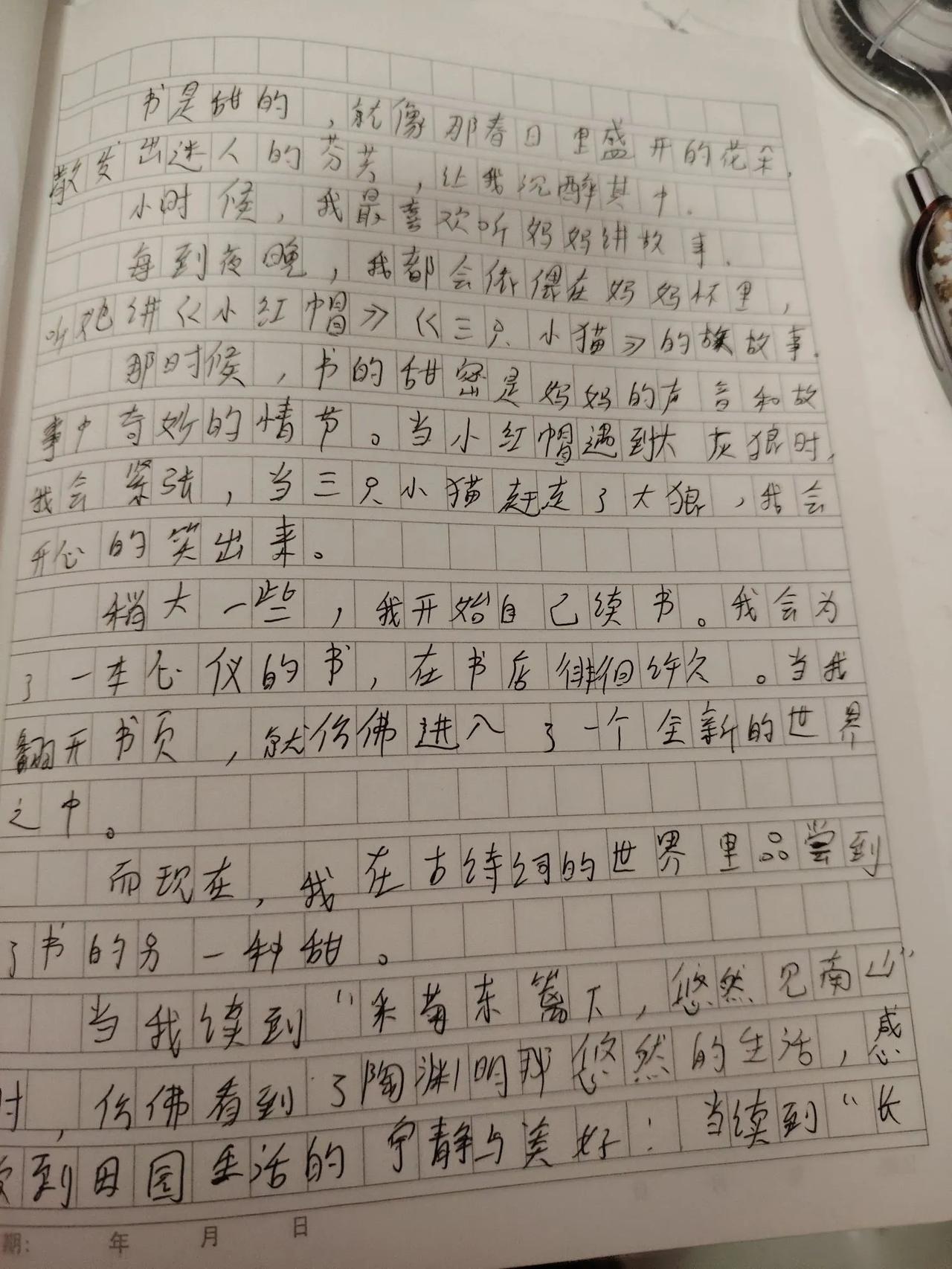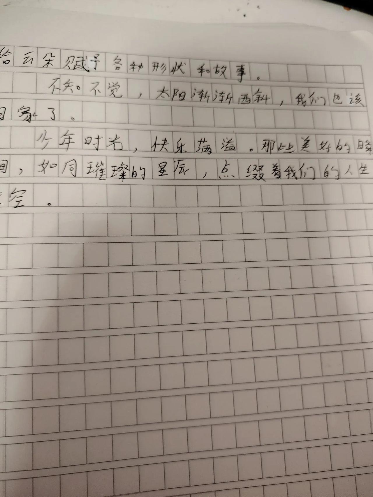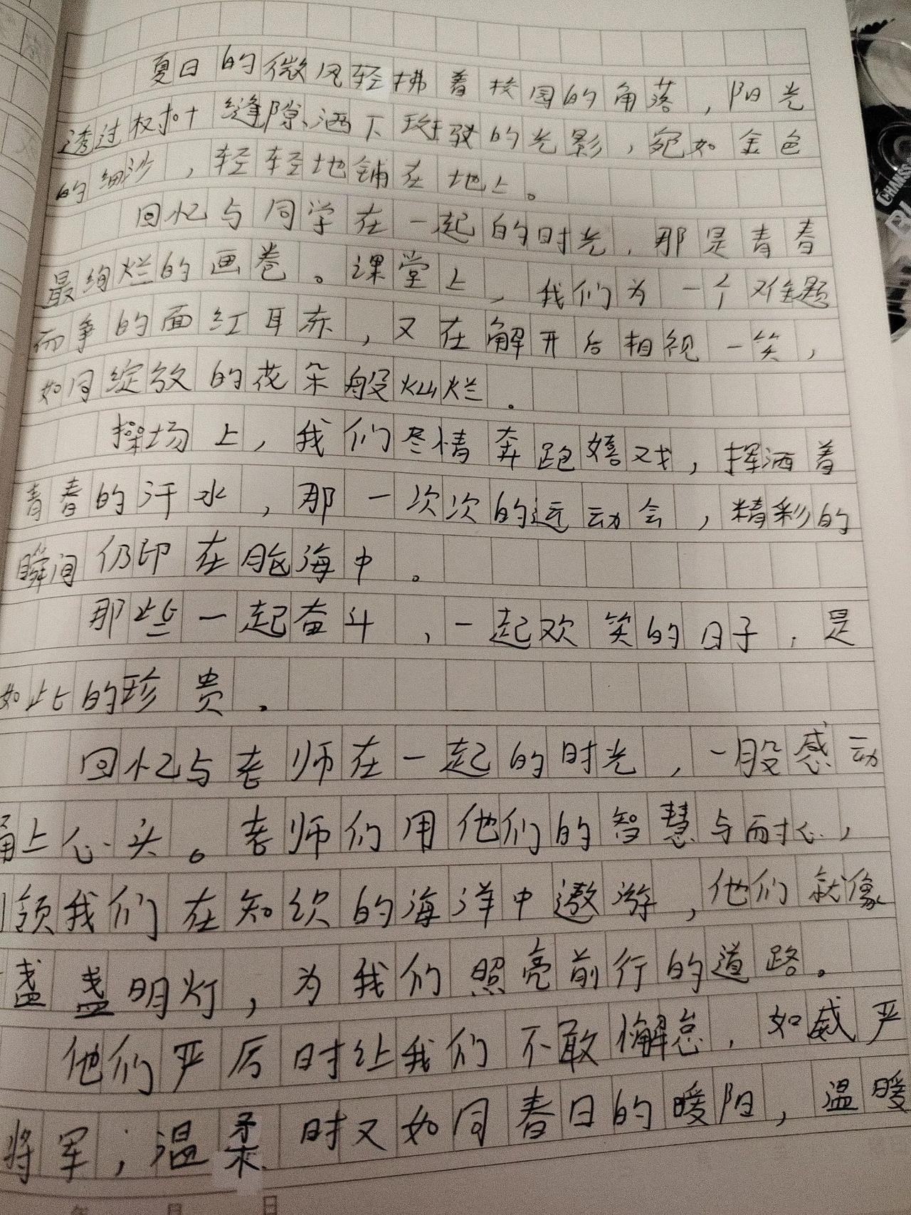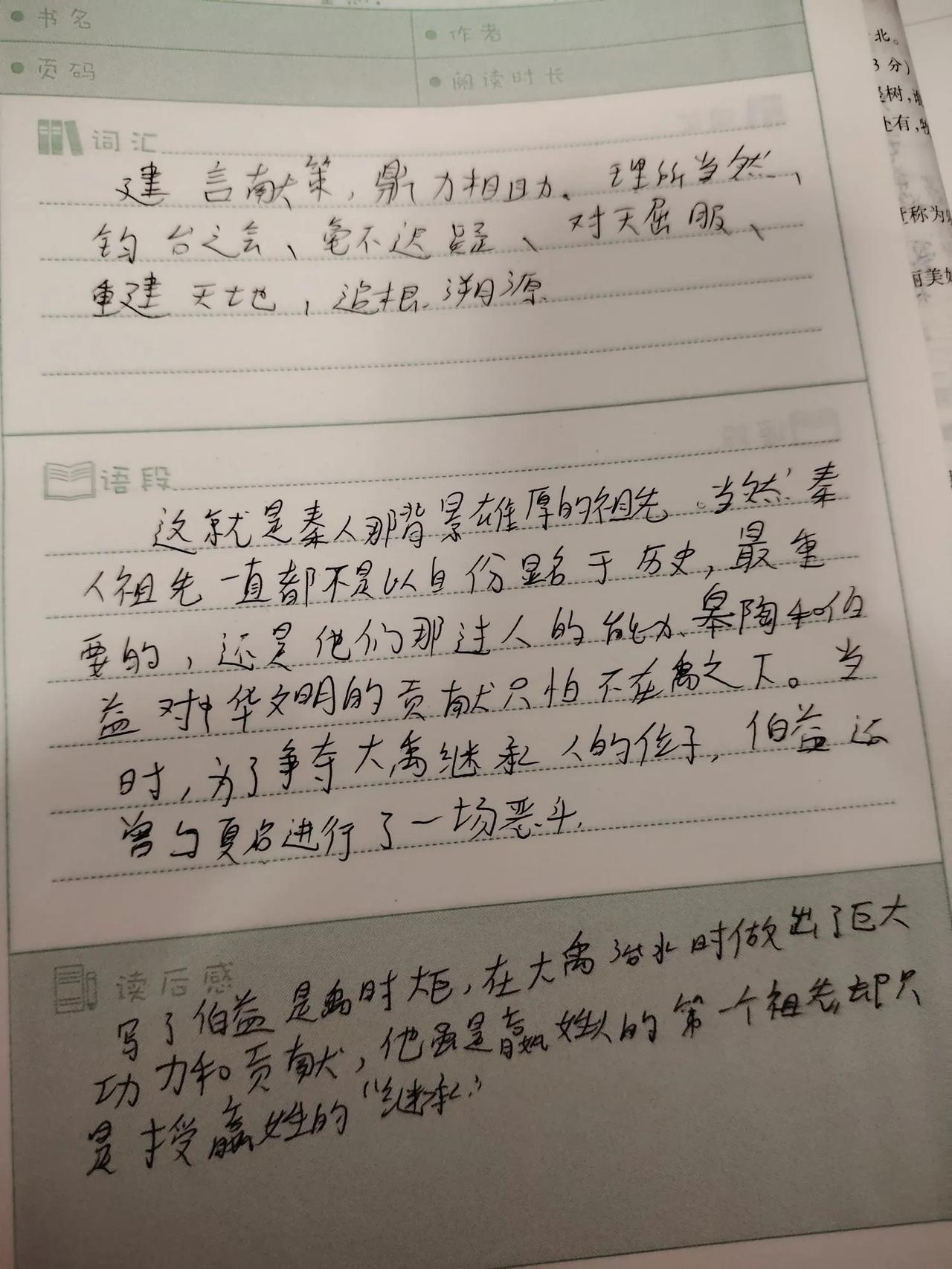 这周六和周末我让我家宝贝提前体验了小升初作文的魅力。 周六写了两篇,周日写了两篇。 我觉得时间充足的情况下多练练这类作文,对于下学期的小升初考试来说也是水到渠成的。 挺好的。 下图👇🏻👇🏻👇🏻👇🏻👇🏻👇🏻👇🏻👇🏻👇🏻👇🏻👇🏻是周六写的两篇作文,名字叫(少年时光,快乐满溢)以及(与你在一起的时光) 周日写的两篇作文名字分别是(书是甜的)和(成长需要勇气) 其实历史很有趣之秦朝读书笔记。 分享给大家 一起加油哦[耶] (我给她配了很多小升初的学习内容。 测试卷也有好几套,里面有很多小升初作文。 多练练也挺好的。 最起码写作的时候可以轻松应对。)