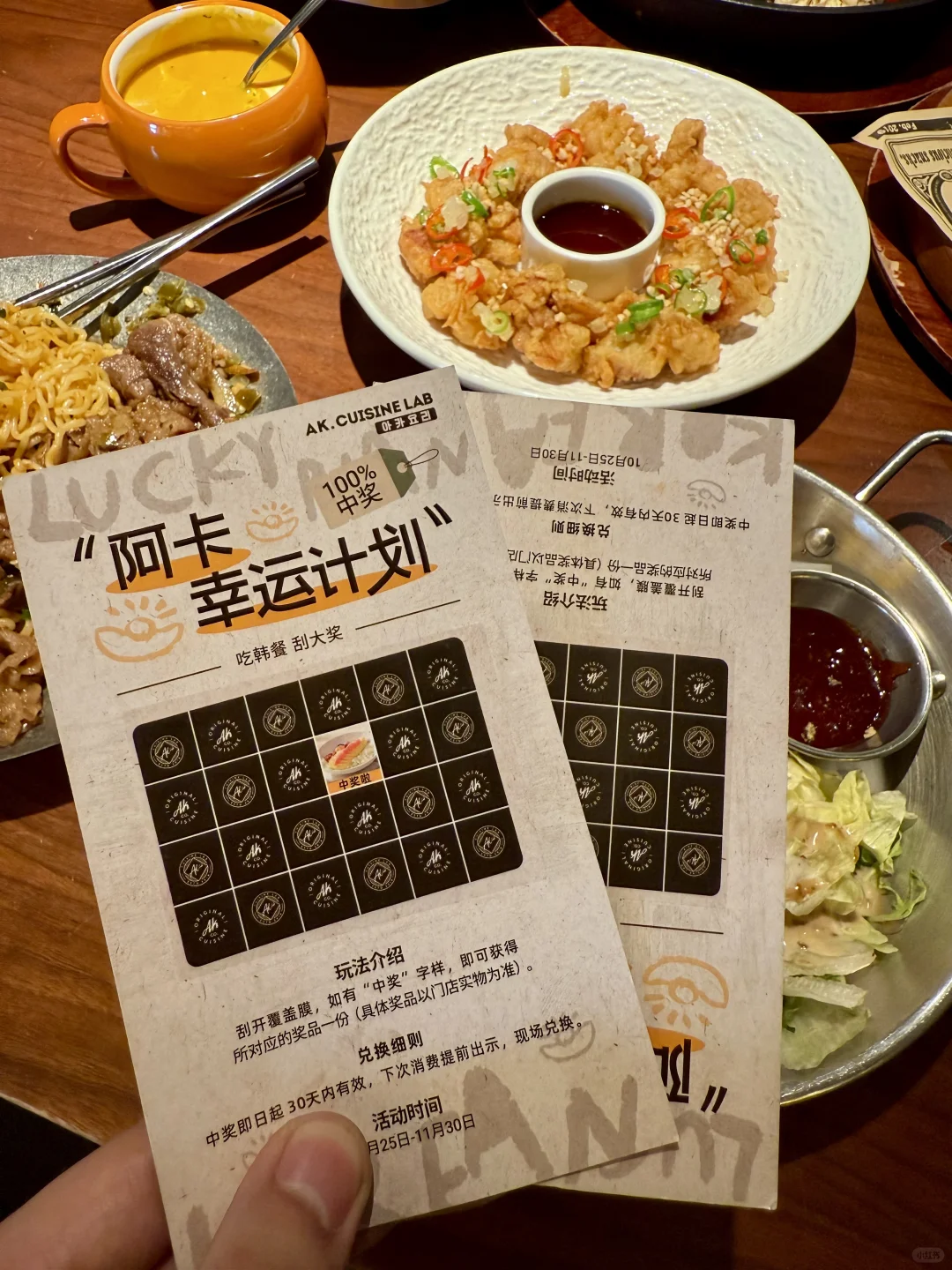 还得是本地人靠谱啊,就在地铁口 这几天在武汉最满意的一顿(好吃、不贵 焕新升级,还送刮刮乐,居然中了好开心呐 . 👆💓✅ 1️⃣辣奶油烤鸡(香酥水嫩有嚼劲吼吼吃, 2️⃣辣芝士肋排(芝士脑袋必点,还会拉丝哦 3️⃣绵绵柿子雪冰(清甜的柿子冰冰凉👍👍 4️⃣泡菜辣奶油煎饺(裹上奶油馅料满满、 5️⃣油泼牛五花辛拉面(肉肉多多ju满足😋 .