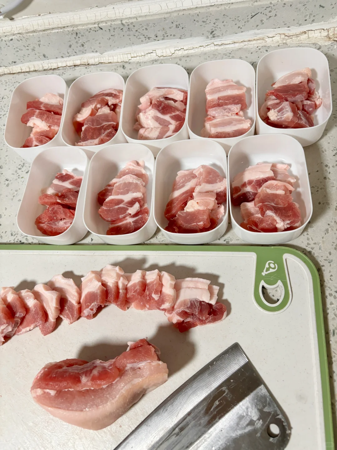 今天后悔没让菜场老板帮忙切 回家用我那破钝刀费老劲了,切到手疼 不过这次的肥瘦相间,总体满意啦 32块两斤吃一周👌