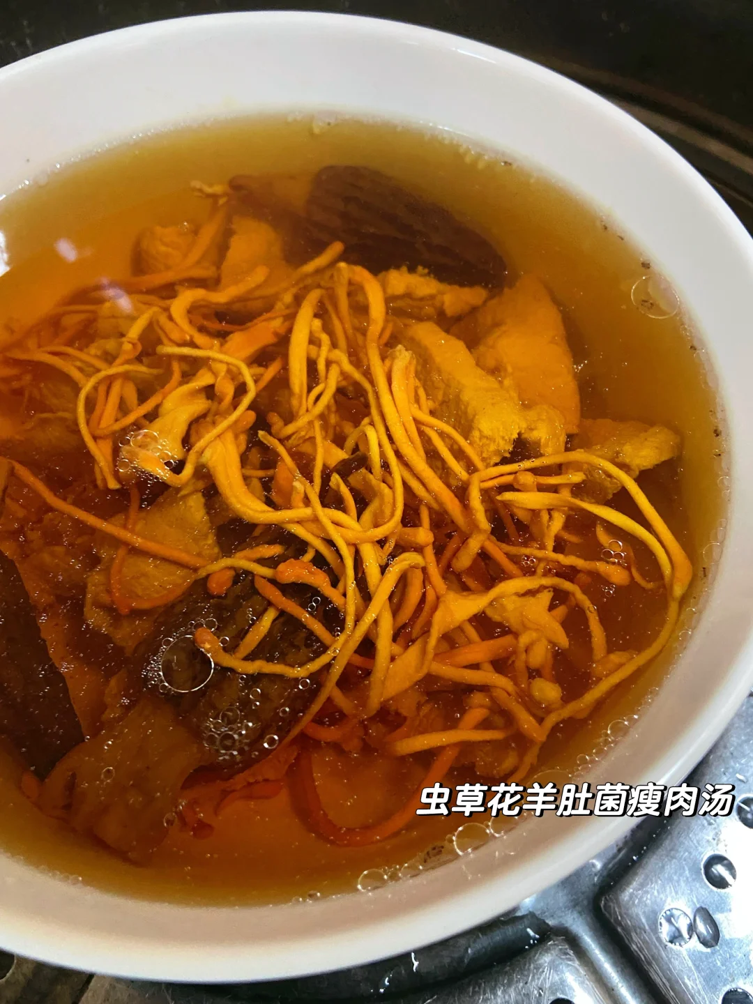 苦瓜炒肉 虫草花羊肚菌瘦肉汤 瘦肉汤很清甜~ 电饭煲隔水蒸2小时