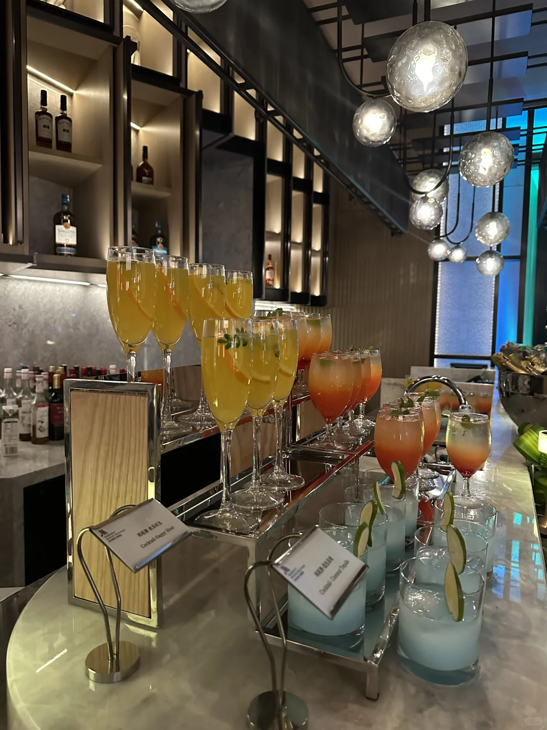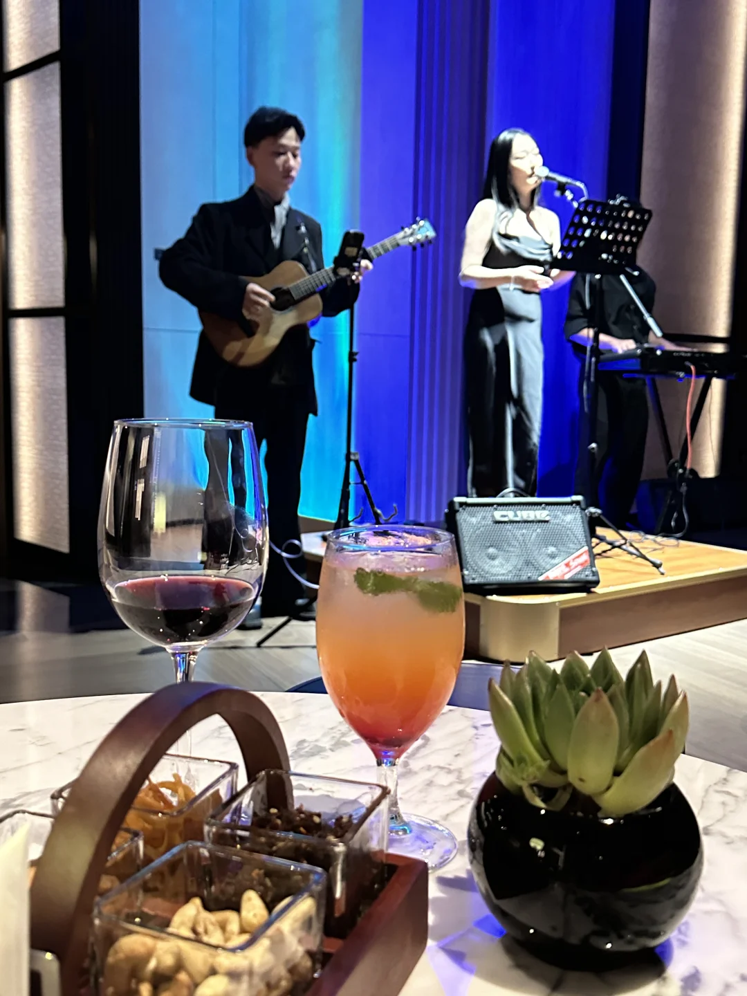 闺蜜来武汉旅游 每次都会入住襄投万豪酒店 酒店环境舒适 有种入住高空云端的感觉 ☁️ 没想到这次赶上襄投万豪一周年庆 酒廊现场氛围超chill 带上手环就可以一次性品鉴多种 款式热门红酒 、各种鸡尾酒🍹 现场还有歌手驻唱 是闺蜜喜欢的爵士乐🎵 一边微醺一边品尝美酒🍷 太惬意啦 夜晚还可以去 襄投万豪的61楼高空行政酒廊 小坐一会 高空露台 尽享武汉夜景🌃