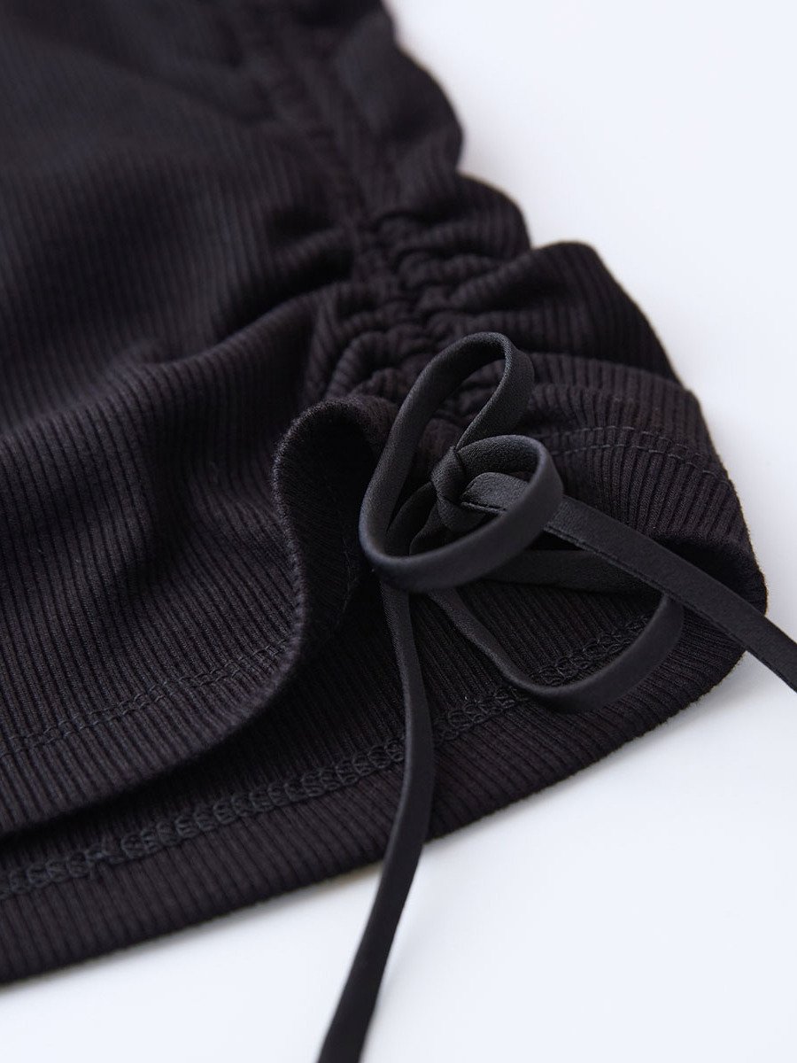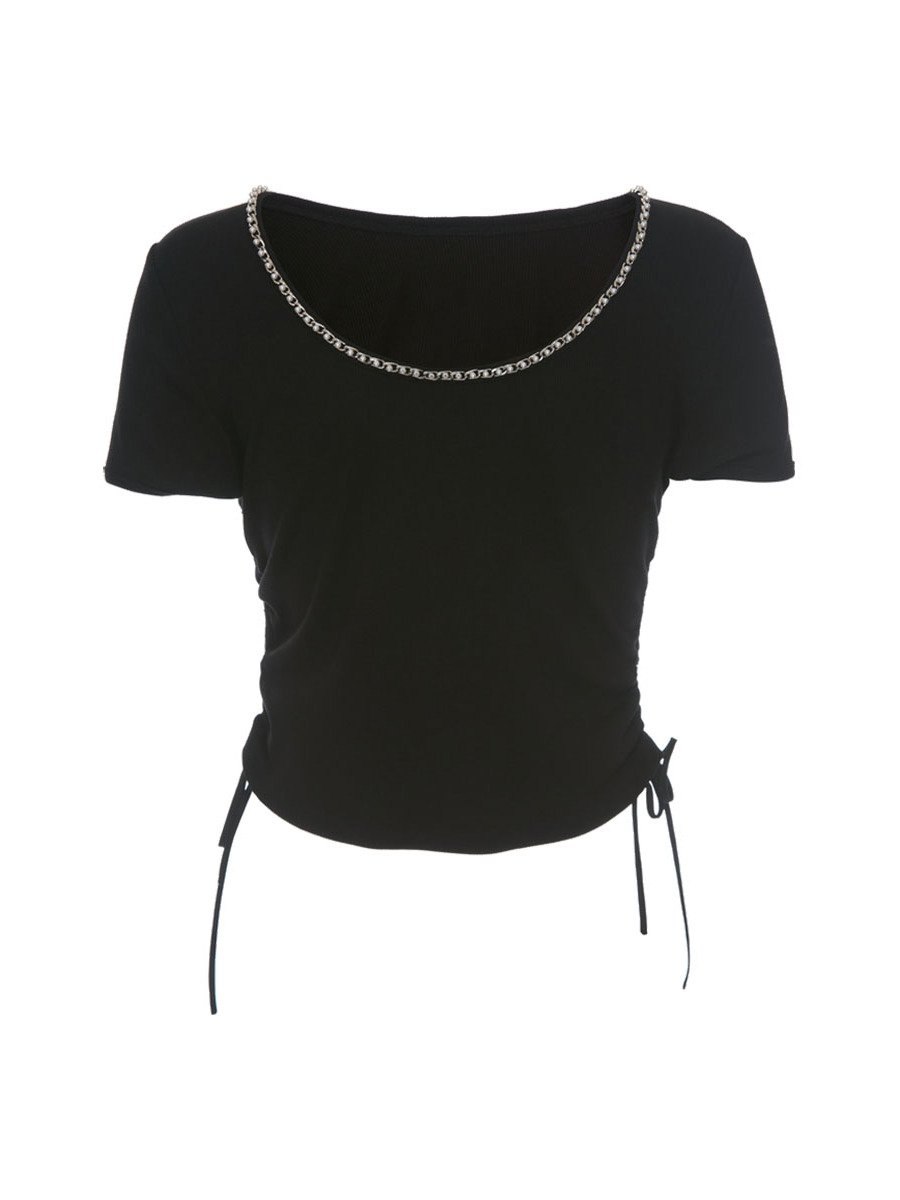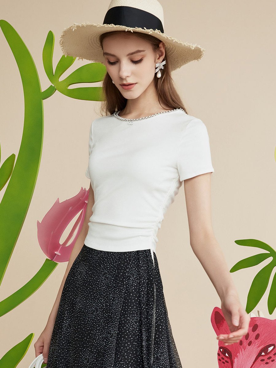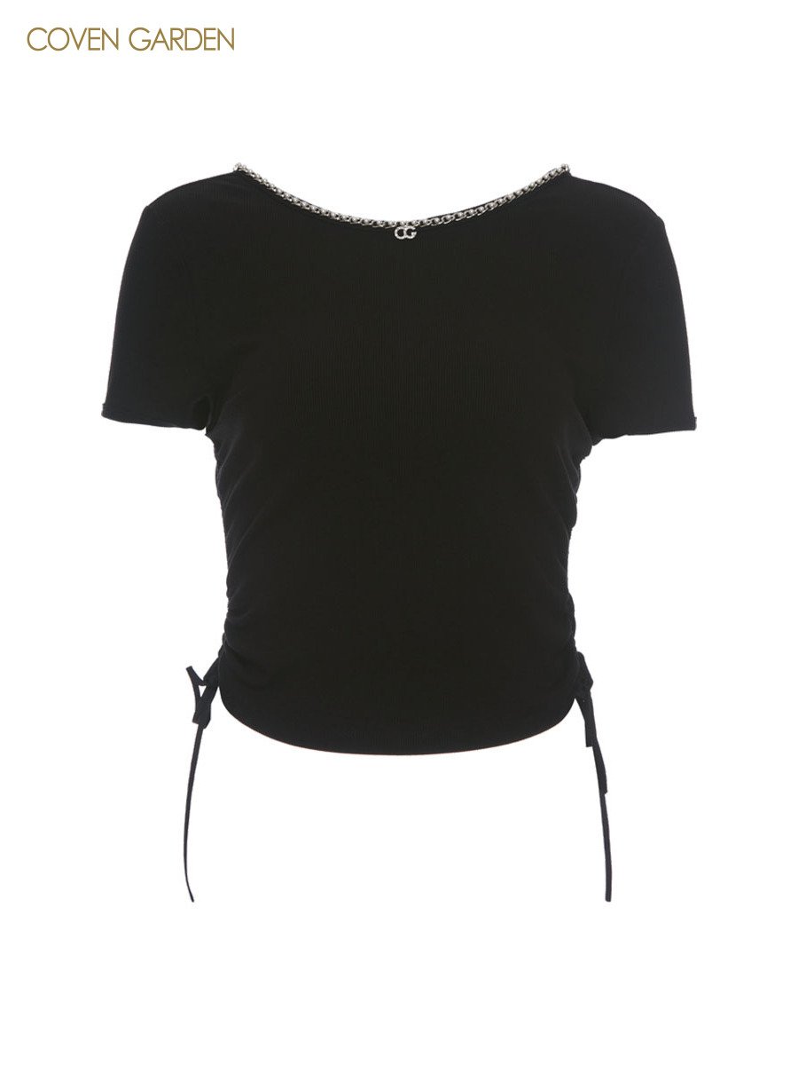 哥文花园夏季新款简约百搭系带松紧短袖T恤
