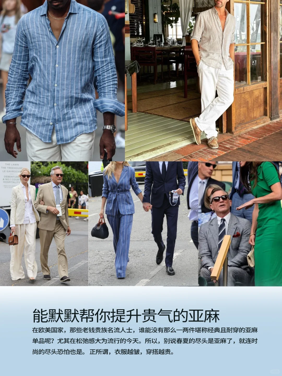 要知道,在欧美国家,那些老钱贵族或是名流人士,谁能没有那么一两件堪称经典且耐穿的亚麻单品出席活动呢?