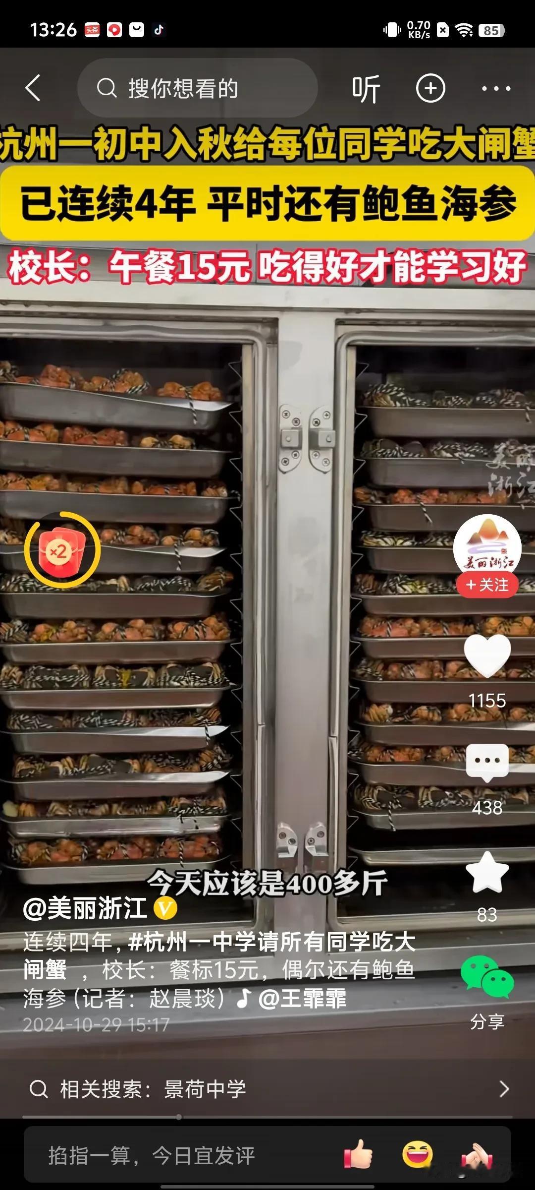 不知道什么时候教育就变了味儿,前一天才刷到一个朋友说广州某小学零食进校园,零食品种繁多,应有尽有,孩子可以刷脸支付,信息绑定了父母的微信。 今天又有杭州的学生在校吃大闸蟹,人均三个,校长还说吃好喝好更有利于学习。校长这是赚到多少钱喜笑颜开的,饱暖思淫欲不是我说的,是老祖宗说的,敢问校长,你知道有多少孩子的家长吃不上大闸蟹吗?大闸蟹是孩子们这个年龄段该享受的吗?降低不必要的教育支出,给家长减负不行吗? 家长教育孩子不敢训斥,一味的讨好,学校不想失去生源一味的讨好孩子,在孩子的世界里,幸福的生活是正常的,吃大闸蟹也是正常的,当他们吃不起的时候会怎么样呢?抑郁?憎恨?跳楼?躺平摆烂?由俭入奢易,由奢入俭难。老祖宗的智慧是彻底的丟到脑后了。