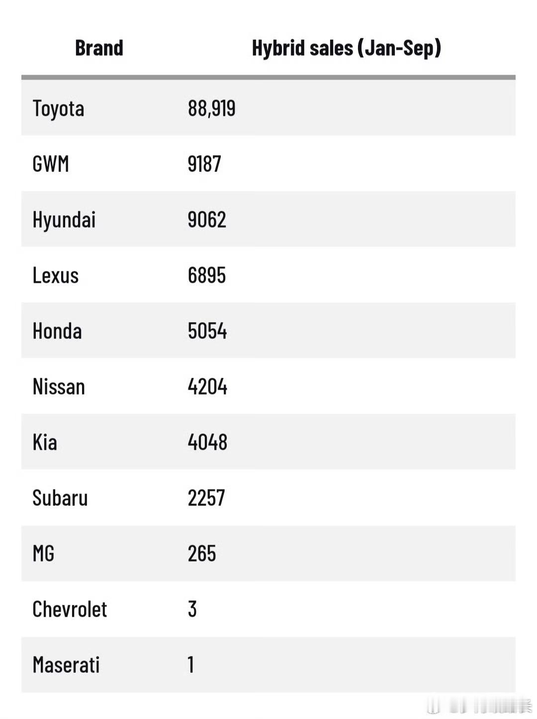 澳大利亚最具性价比的10款混合动力车型,均为HEV,丰田半壁江山40%,现代20%,长城20%,上汽和本田各占10%