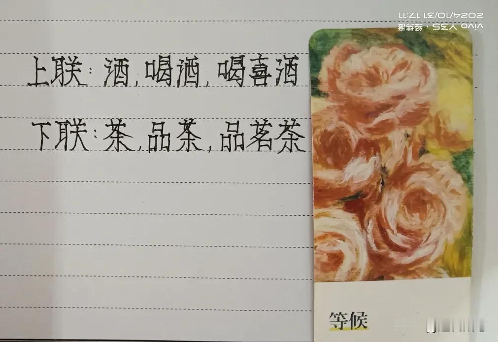 #上联:酒,喝酒,喝喜酒,求下联# 下联:茶,品茶,品茗茶
