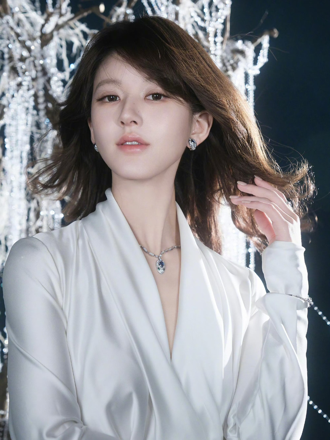 珍珠布景➕丝绸连衣裙,赵露思这身妆造和景也太搭了吧!!![好喜欢][好喜欢][好