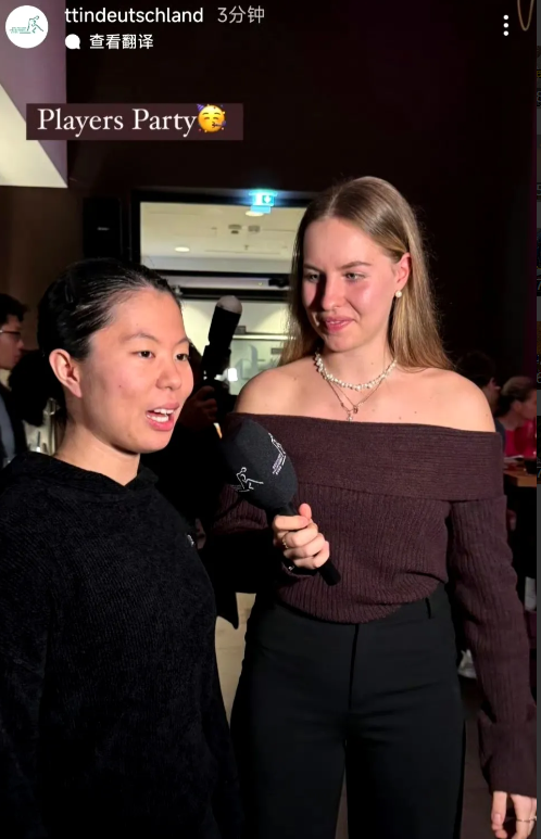法兰克福站选手们的欢迎晚宴! 2024WTT法兰克福站冠军赛选手欢迎晚宴图片来喽。 从国内出发到达法兰克福的曼昱、同同和大迪[赞],她们看起来心情不错,这又是什么鱼眼镜头吗? 出生于2006年的德国新秀考夫蔓🇩🇪上衣穿的很晚宴的样子,但下面是条裤子而不是裙子,她还采访了刘杨子🇦🇺、万远🇩🇪等(图四、图五),身材高挑的她站在弗朗西斯卡🇩🇪旁边依然看起来挺高的(图六),这两个人是在做游戏啊。