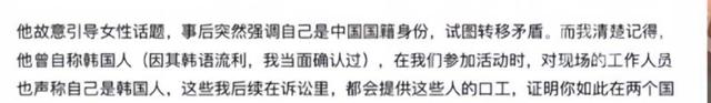 并且他说李知赞就是故意强调自己的身份,通过这个转移矛盾,并且表示李知赞曾在公开场合表示自己是韩国人。