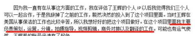 并且在直播中,前合伙人李知赞还说,所有爆火桥段都是他设计的,王辉并不会说中文。