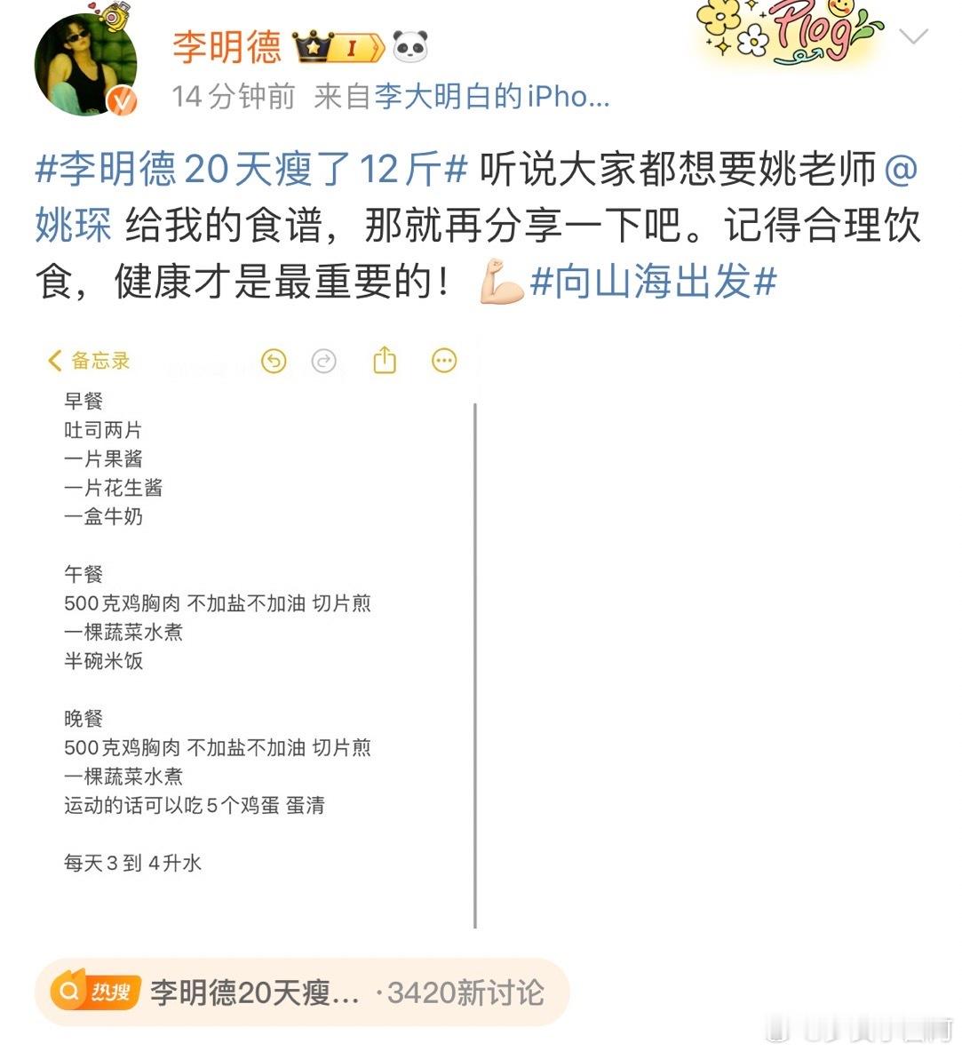 #李明德分享减肥食谱#看出来了,网友真敢问,李明德真敢发,关键是吃这么少真的很难坚持下来啊啊啊#李明德公开20天瘦12斤食谱#