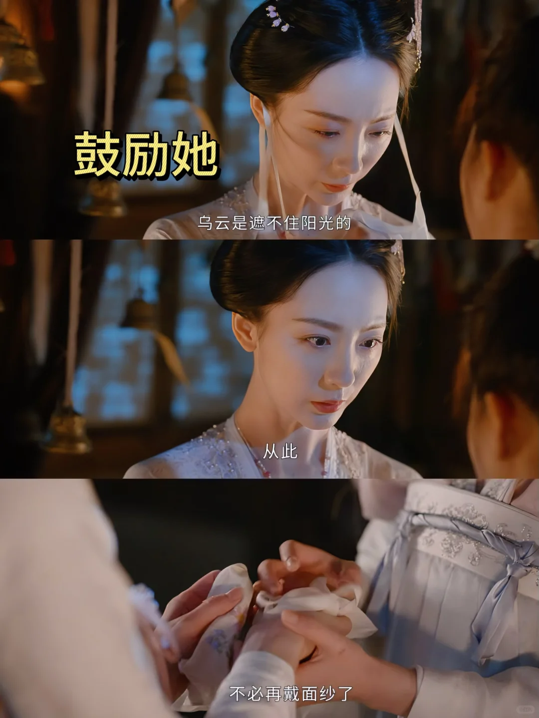 这里端午用期许的眼神,温柔地动作,帮五娘摘下了面纱,还告诉五娘乌云是遮不住阳光的。