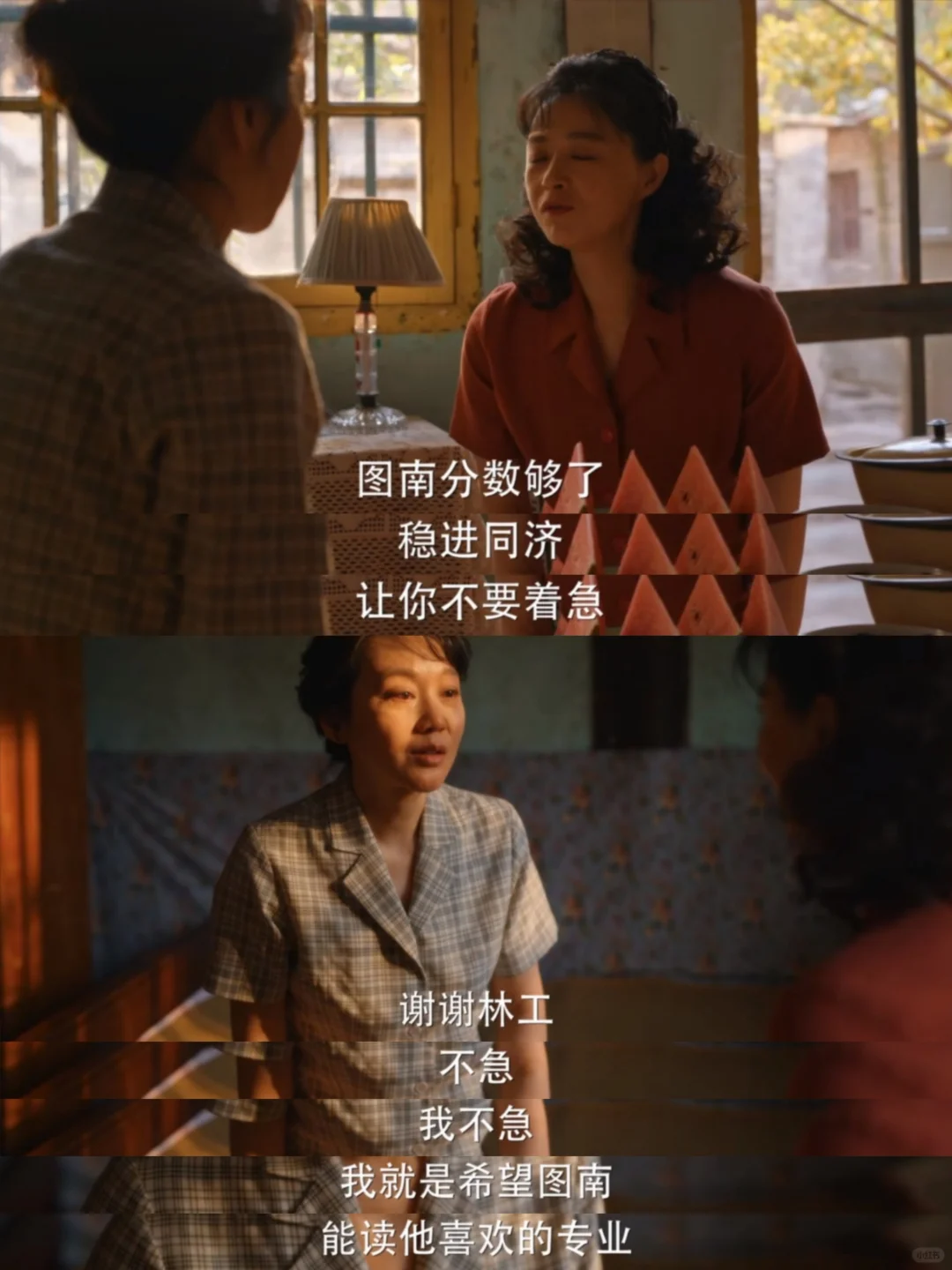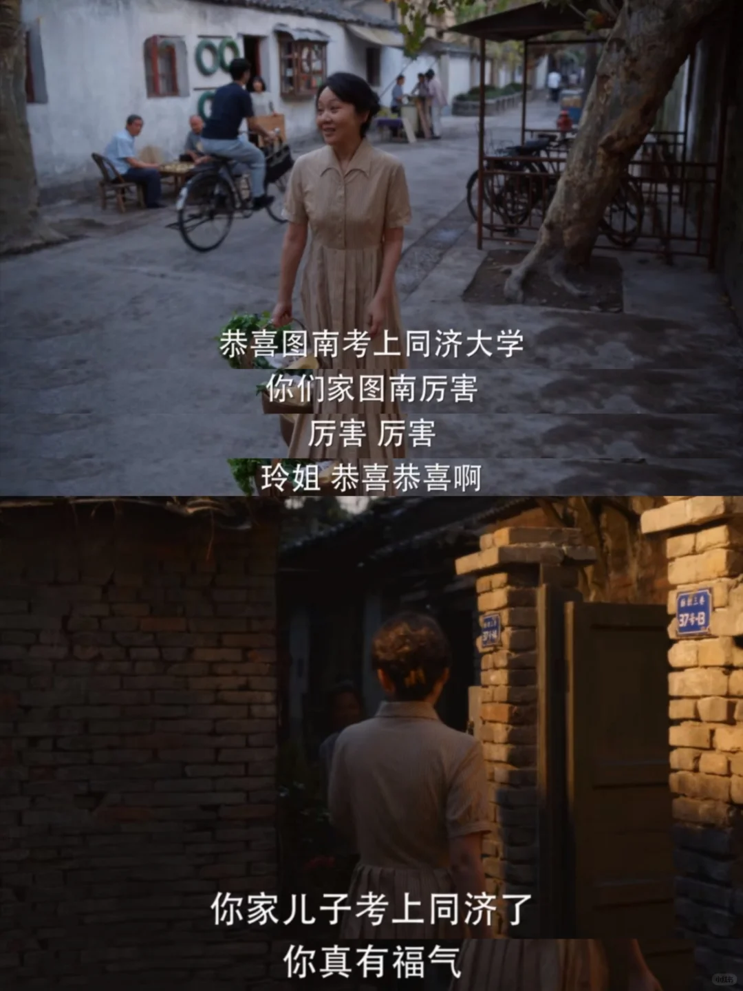 🔹得知图南被真的录取,黄玲换上了漂亮的裙子、买了许多菜、看到为图南拉的横幅、邻居们也在恭喜图南考上大学…