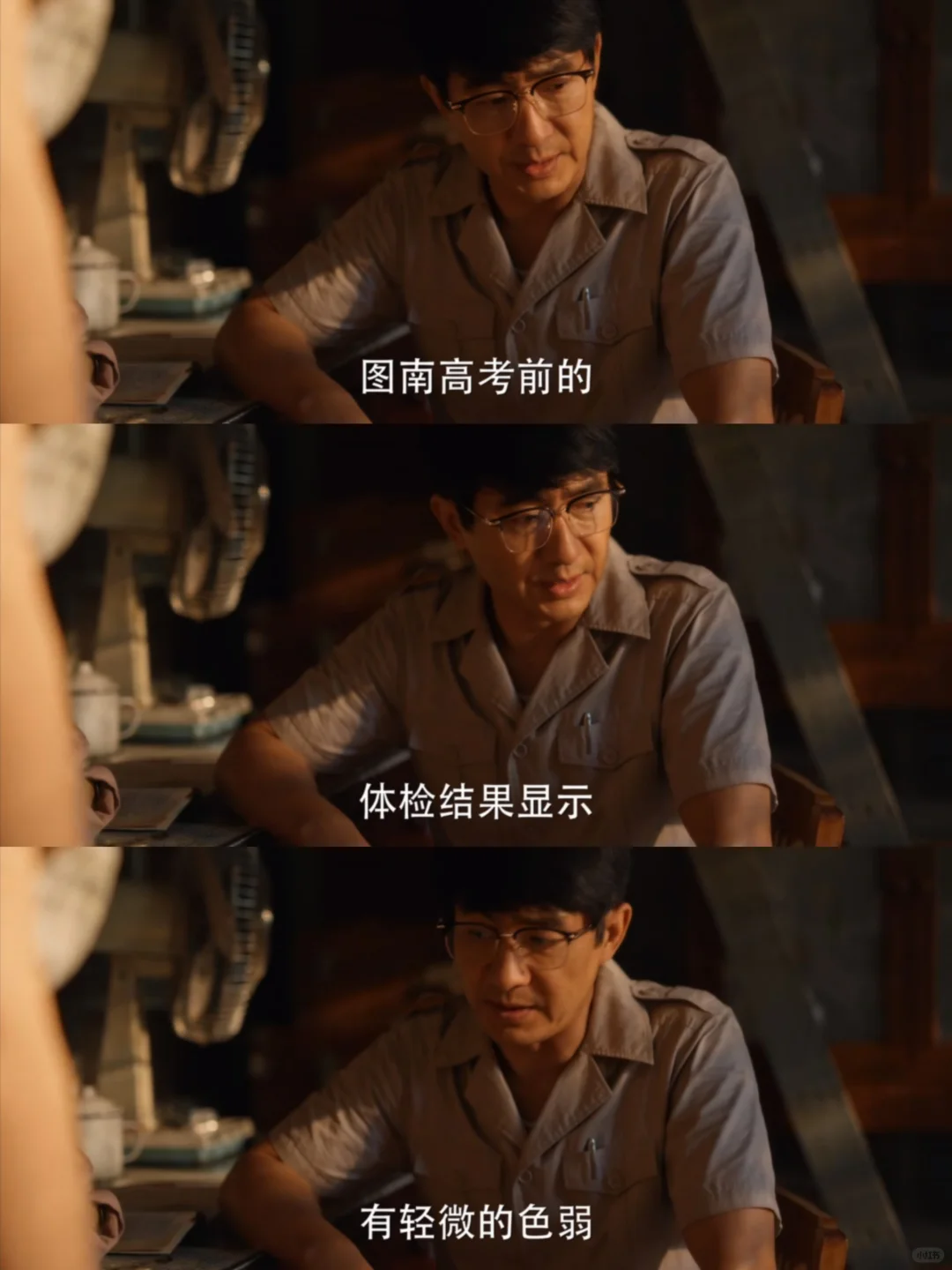 🔹就在两家准备庆祝的同时,一中的老师来电话告诉图南,体检时他有轻微色弱。